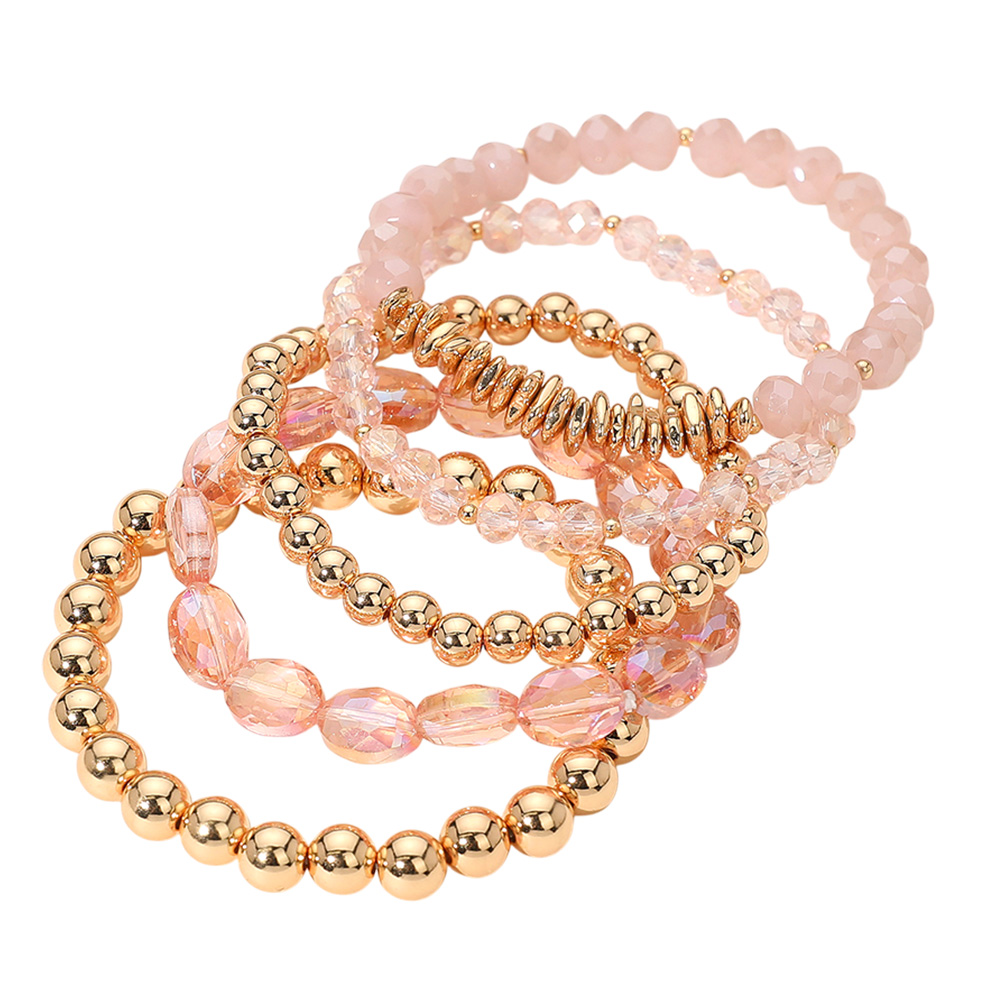 5PCS - Metal Ball Faceted Beaded Stretch Multi Layered Bracelets