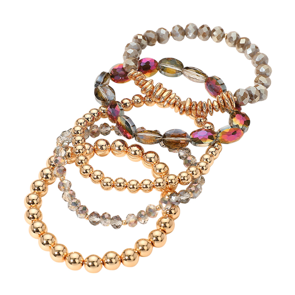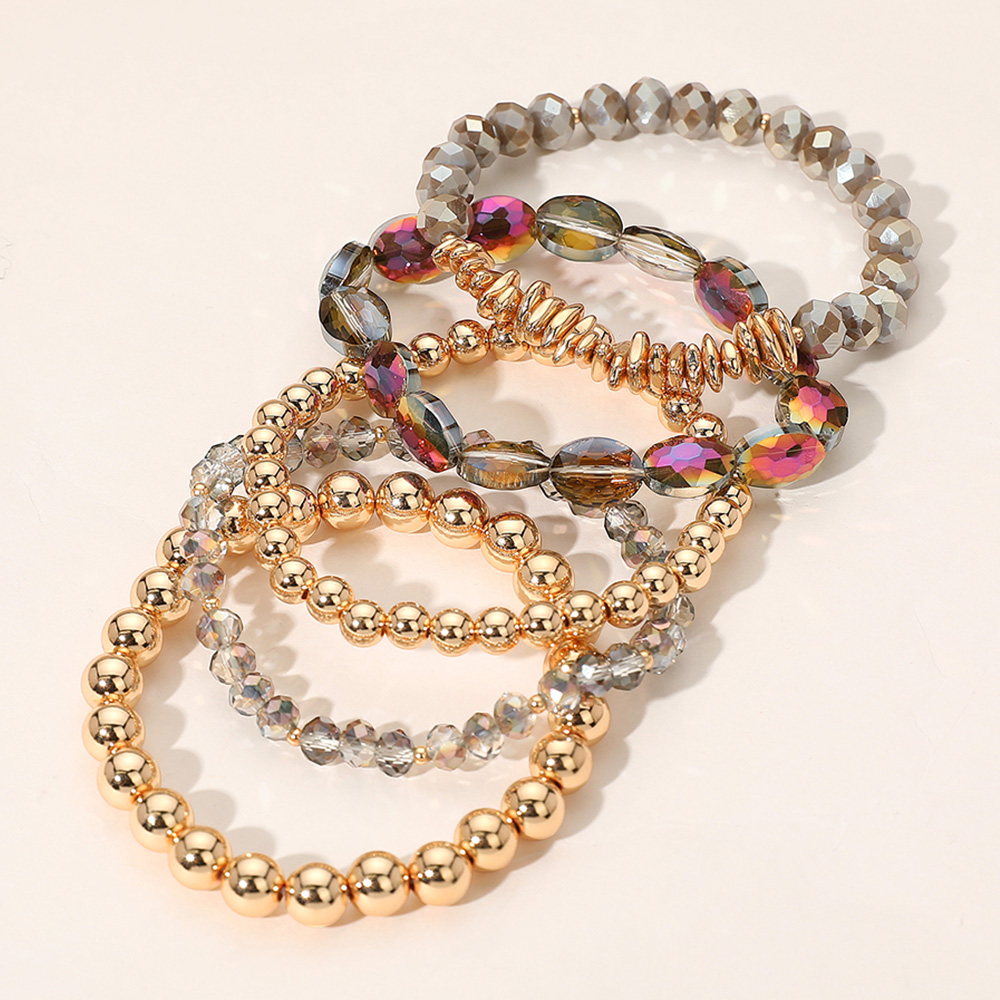 5PCS - Metal Ball Faceted Beaded Stretch Multi Layered Bracelets