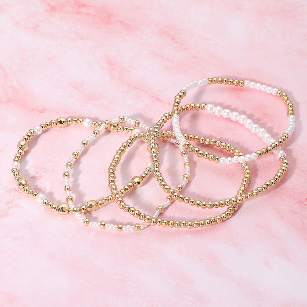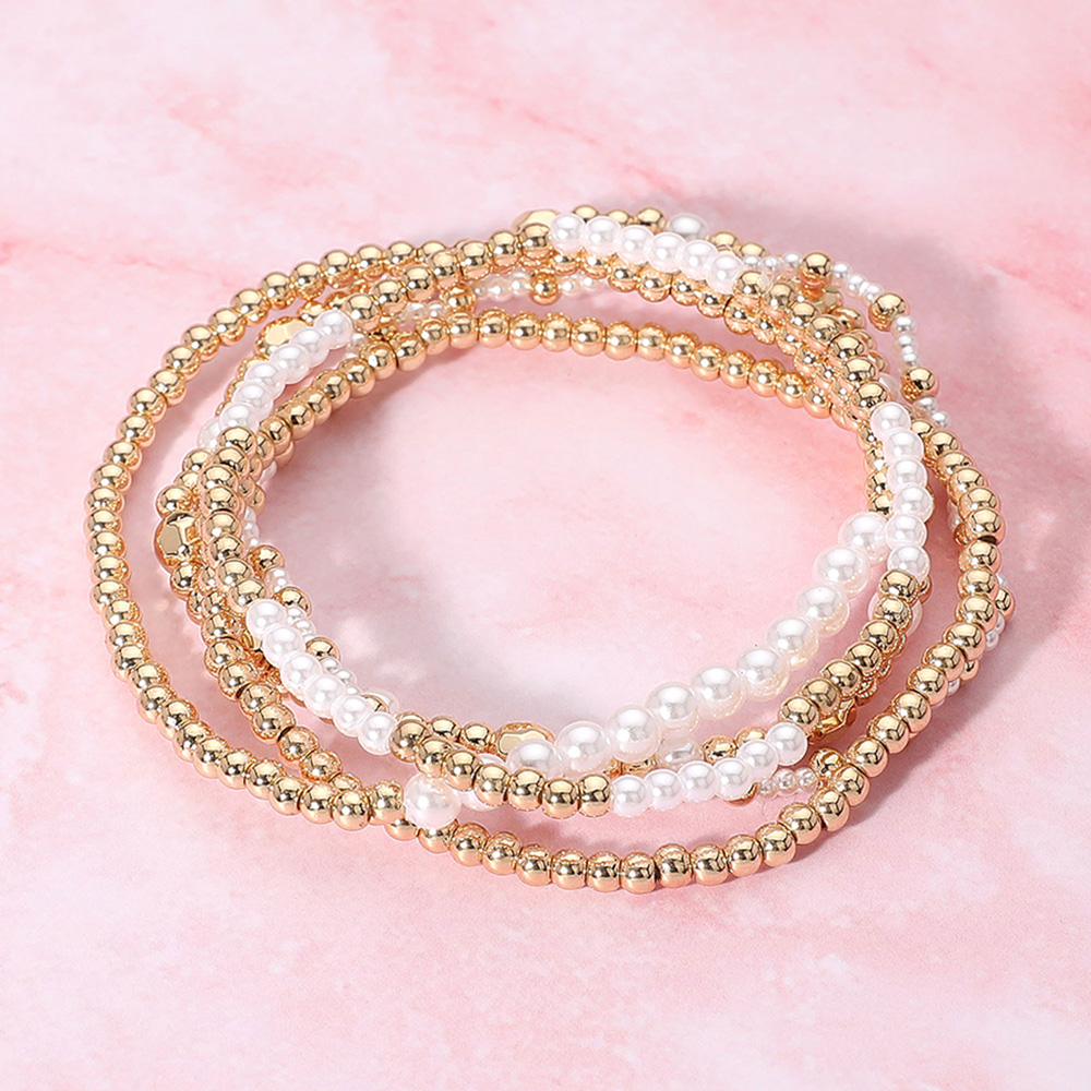 Details • Size : 0.8" H • Stretchable • Elevate your style with this multi-strand stretch bracelet featuring delicate beaded layers. Lightweight and versatile, this chic bracelet adds a touch of elegance to casual outfits or evening looks, making it a timeless everyday accessory. • Lead and Nickel Compliant