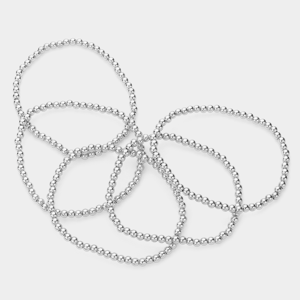 4PCS - Metal Ball Beaded Stretch Multi Layered Bracelets