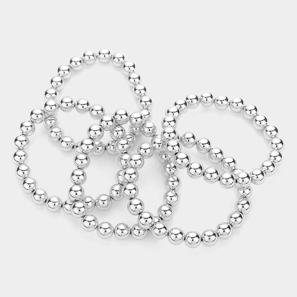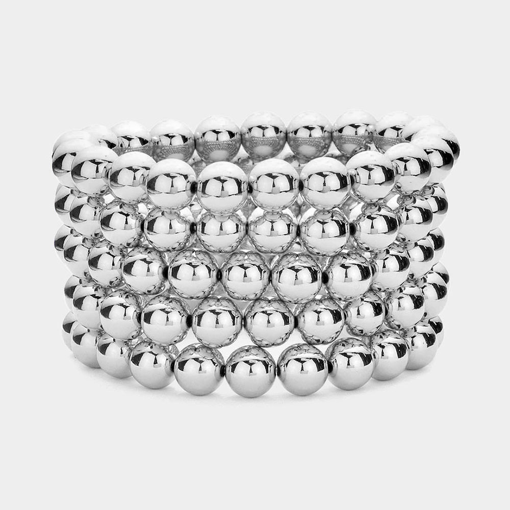 5PCS - Metal Ball Stretch Multi Layered Bracelets