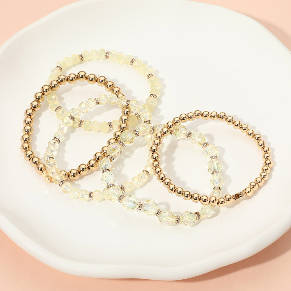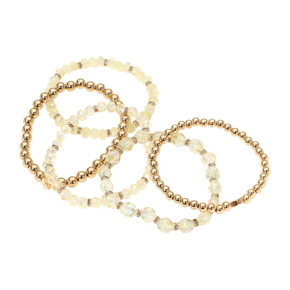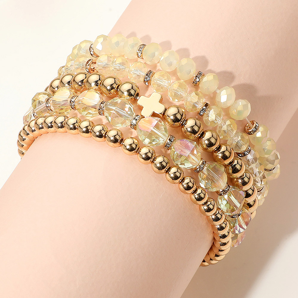 5PCS - Metal Cross Accent Faceted Beaded Stretch Multi Layered Bracelets