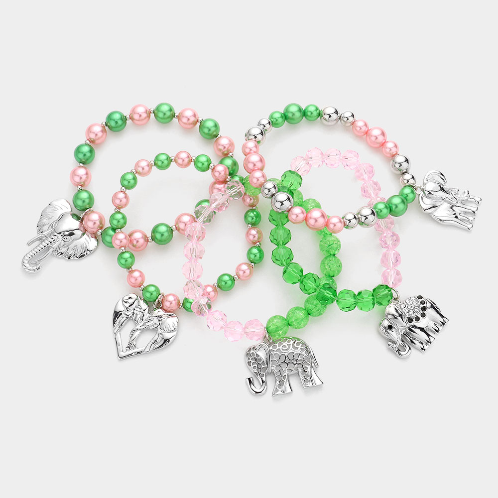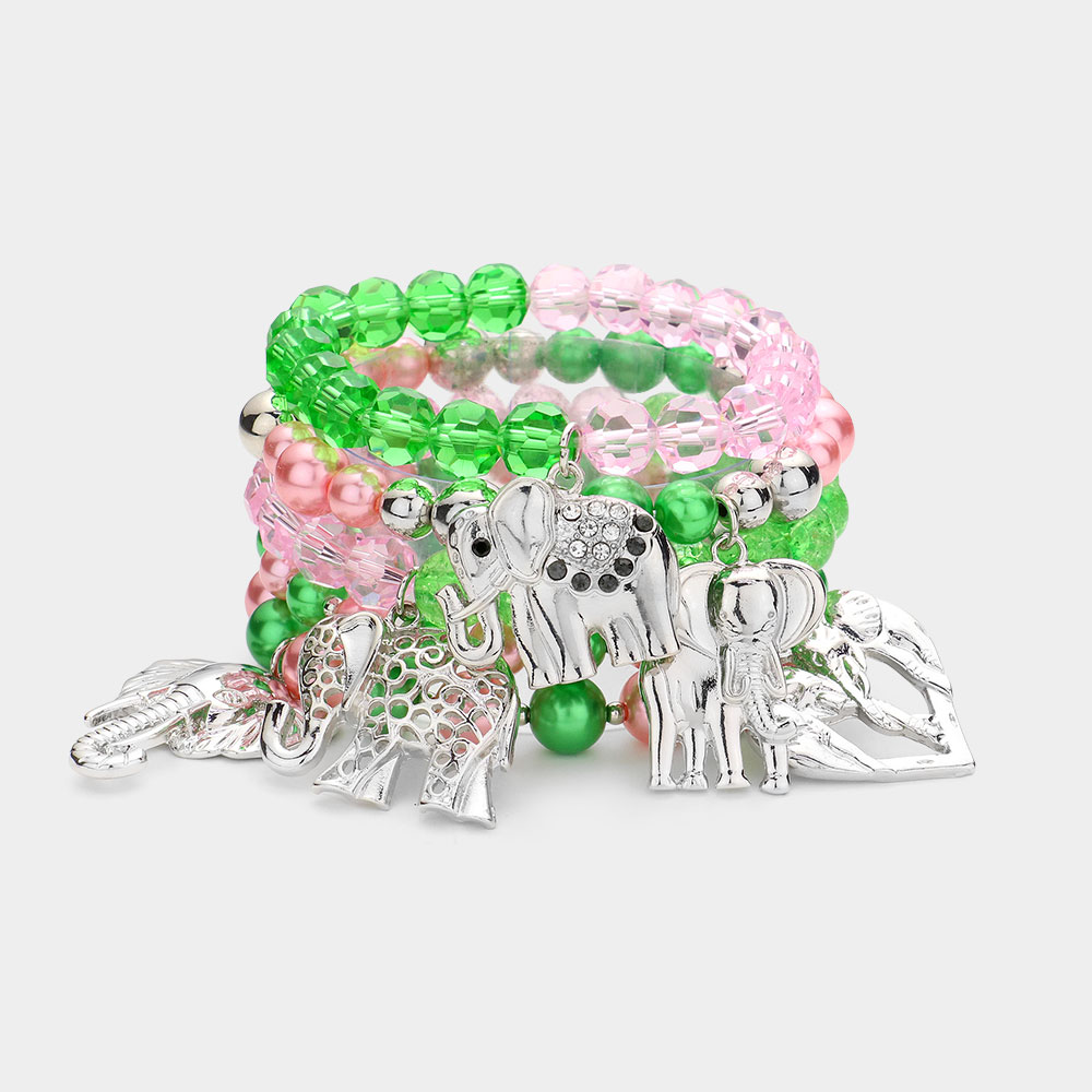 5PCS - Metal Elephant Charm Faceted Beaded Stretch Bracelets