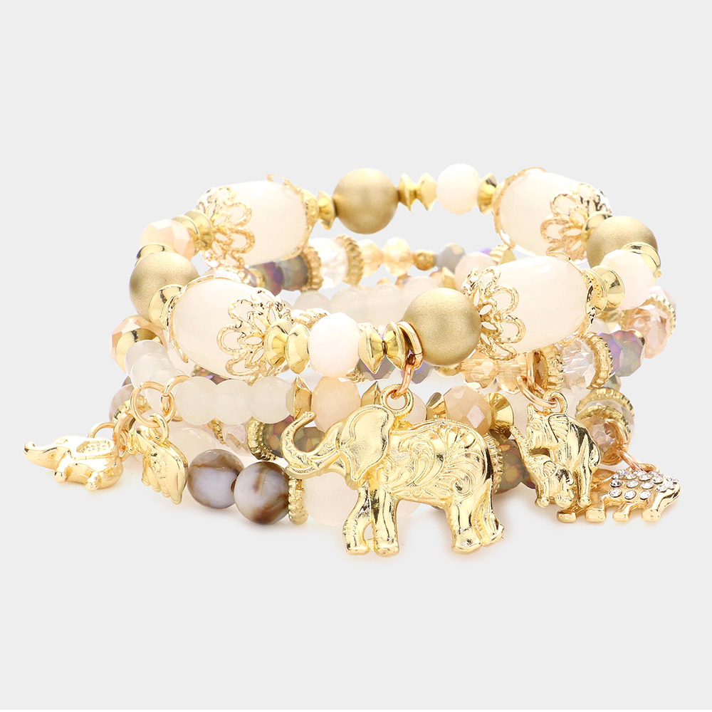 5PCS - Metal Elephant Charm Multi Beaded Stretch Bracelets