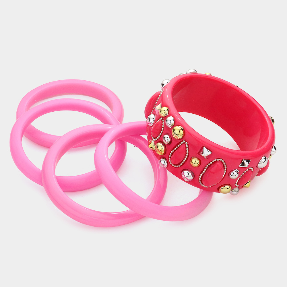5PCS - Metal Embellished Resin Bangle Bracelets