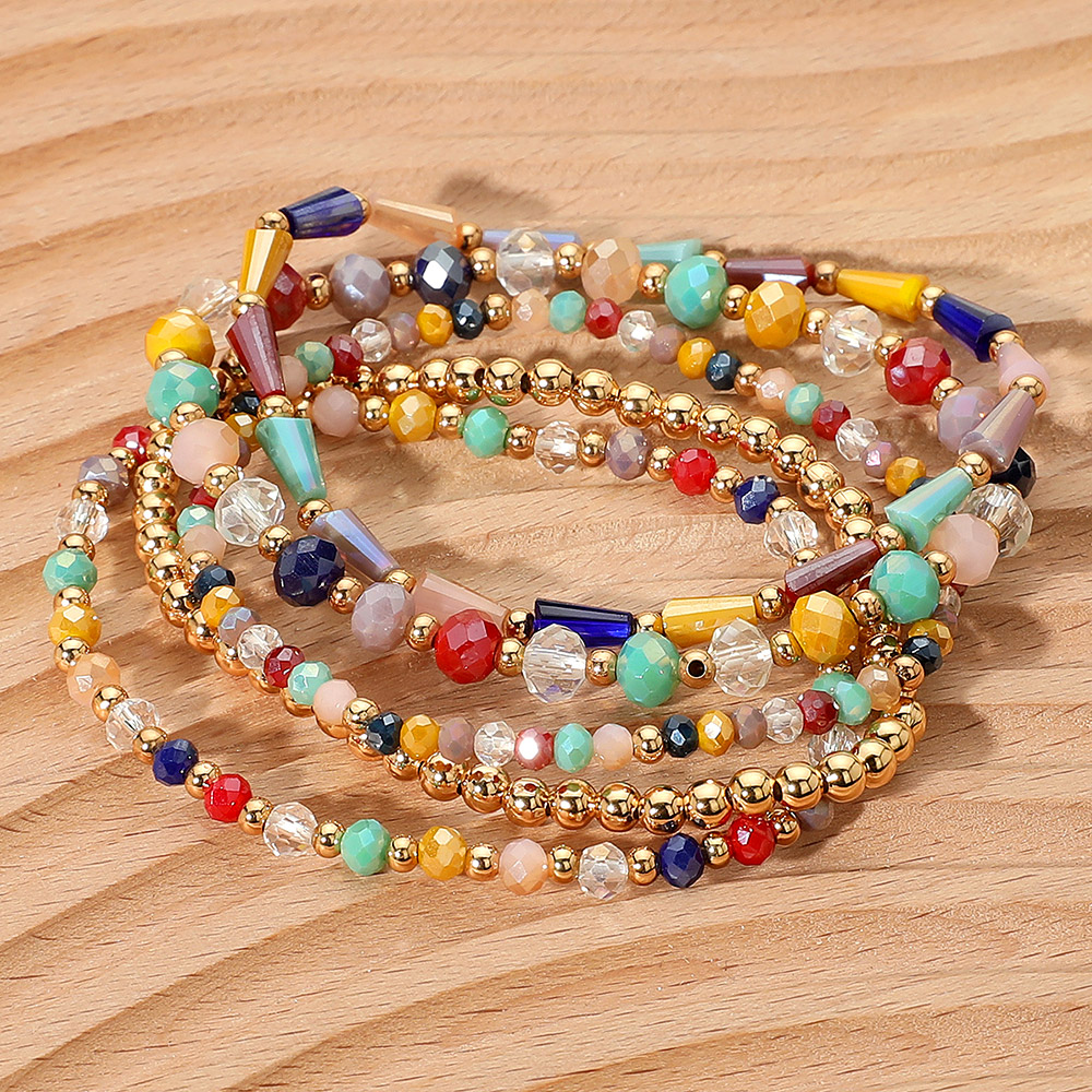 5PCS - Mixed Beaded Stretch Multi Layered Bracelets