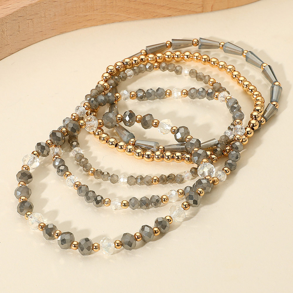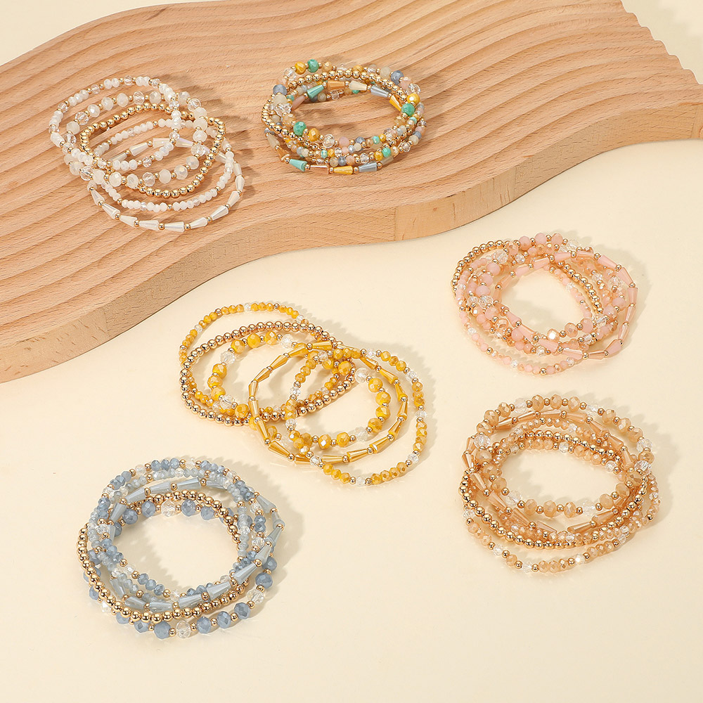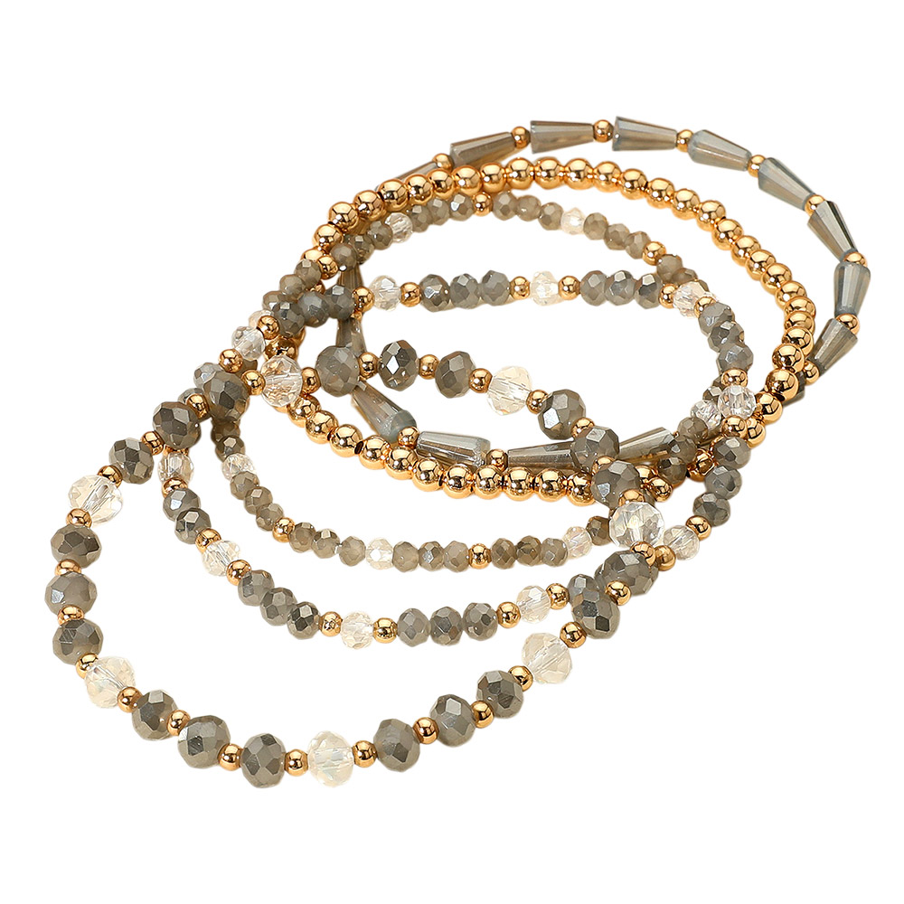 5PCS - Mixed Beaded Stretch Multi Layered Bracelets