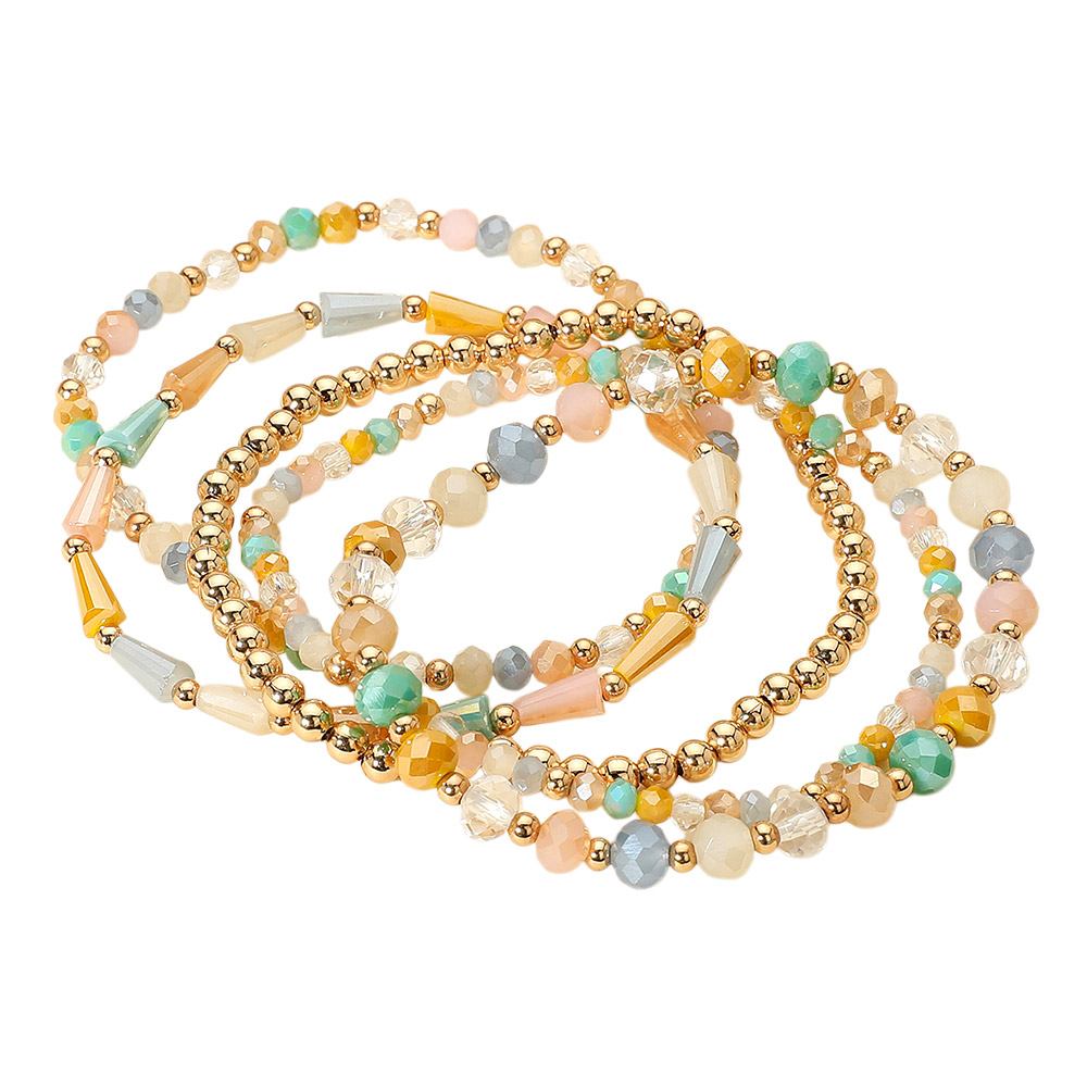 5PCS - Mixed Beaded Stretch Multi Layered Bracelets