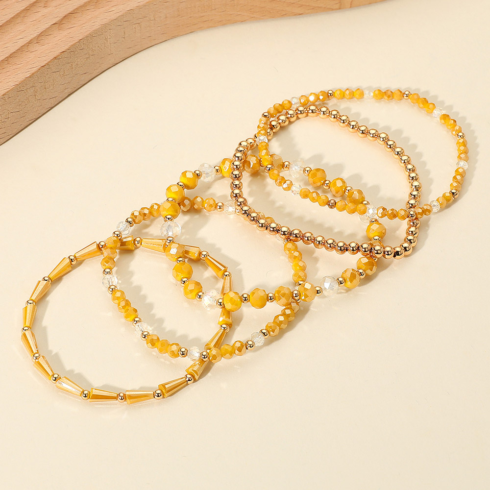 5PCS - Mixed Beaded Stretch Multi Layered Bracelets