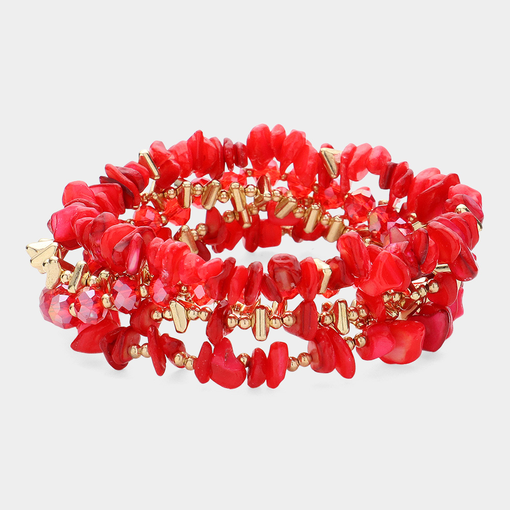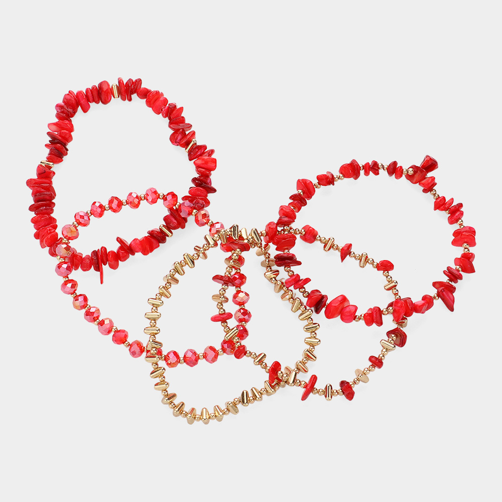 5PCS - Natural Stone Beaded Multi Layered Stretch Bracelets
