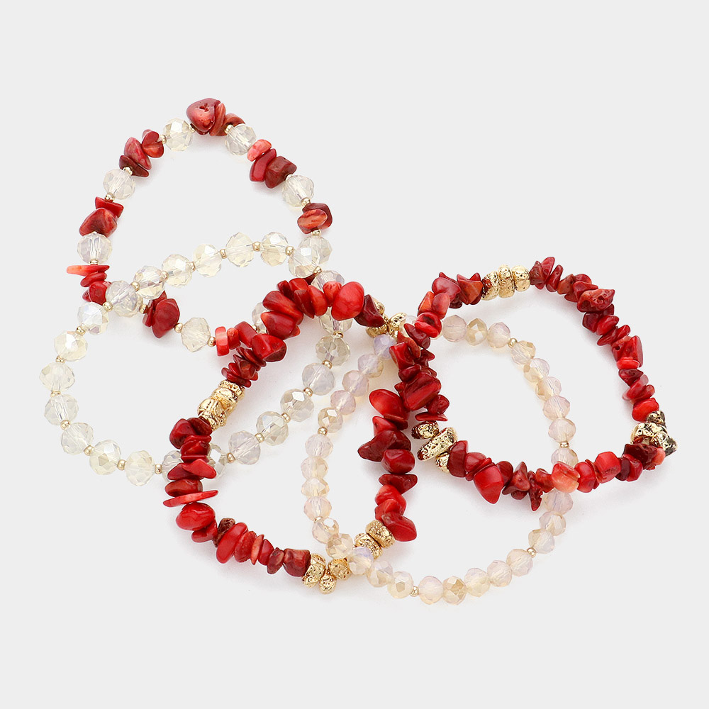 5PCS - Natural Stone Faceted Beaded Stretch Multi Layered Bracelets