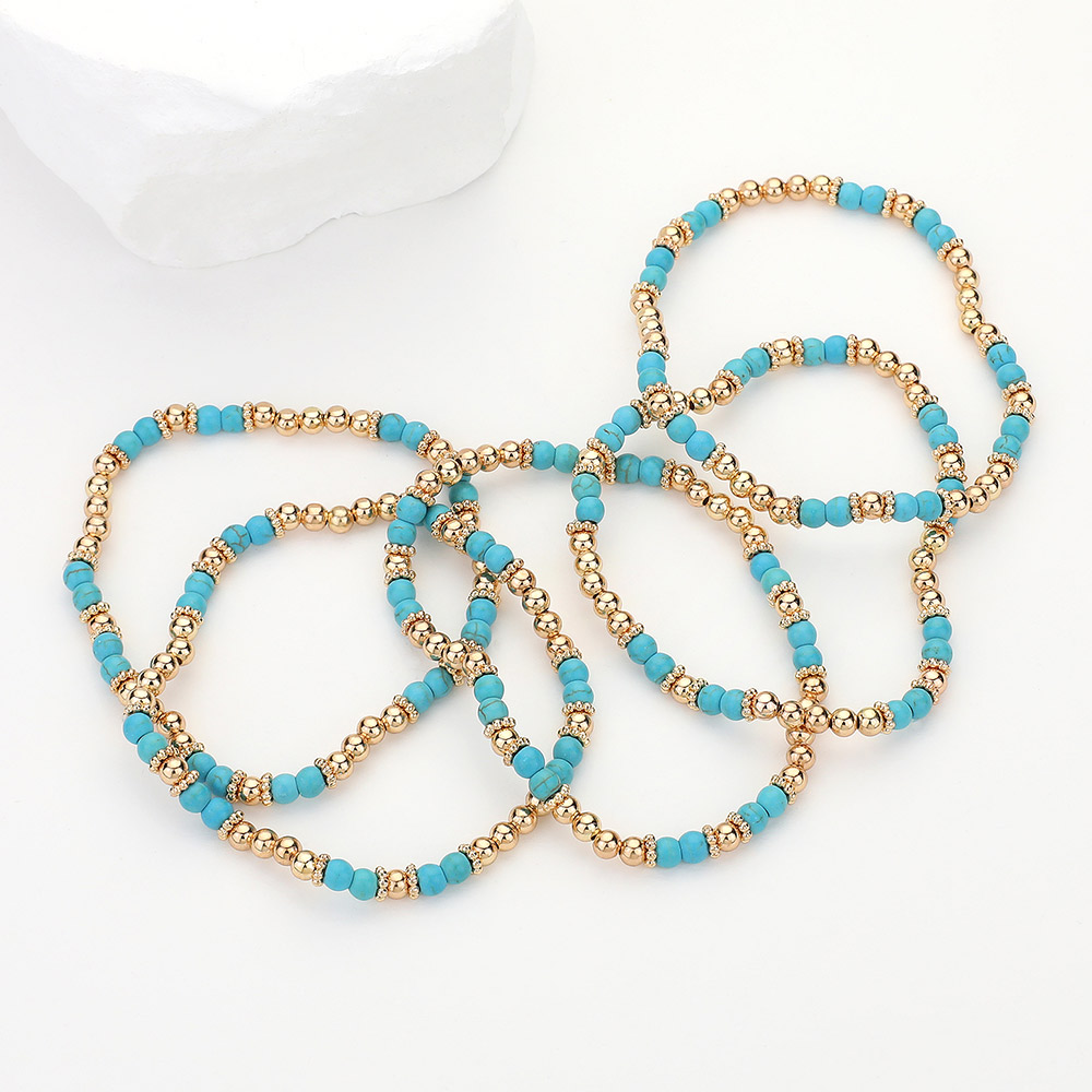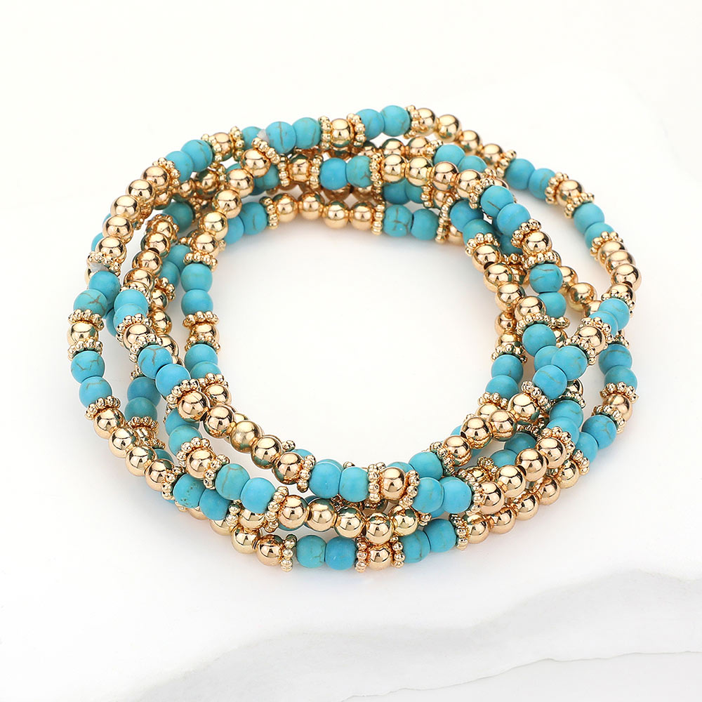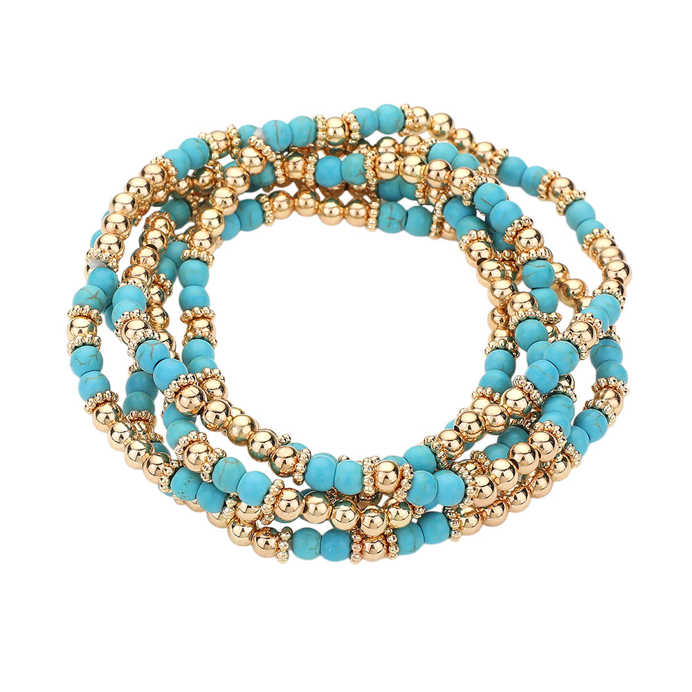5PCS - Natural Stone Metal Ball Beaded Stretch Multi Layered Bracelets