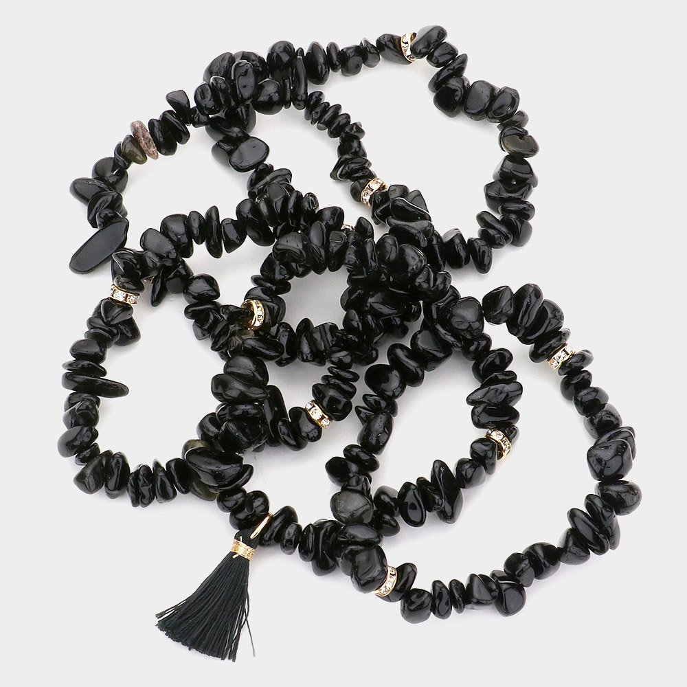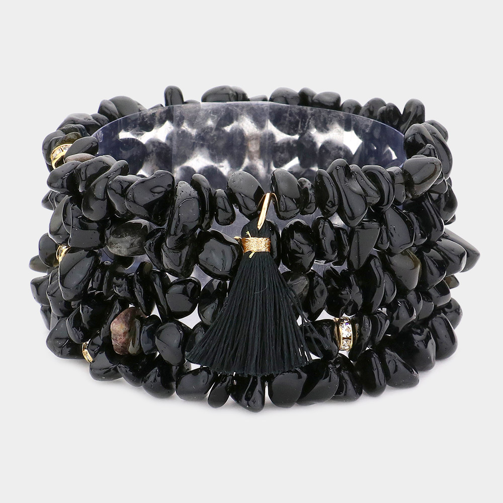 5PCS - Natural Stone Tassel Multi Layered Bracelets