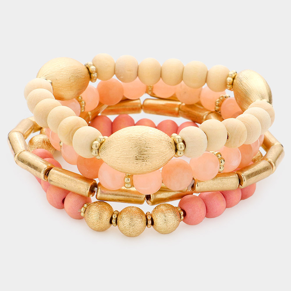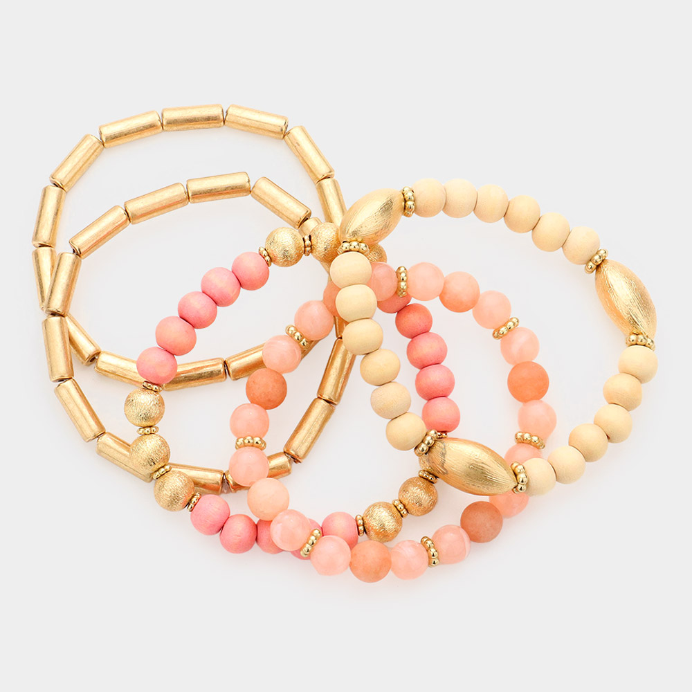 5PCS - Natural Stone Wood Beaded Stretch Bracelets