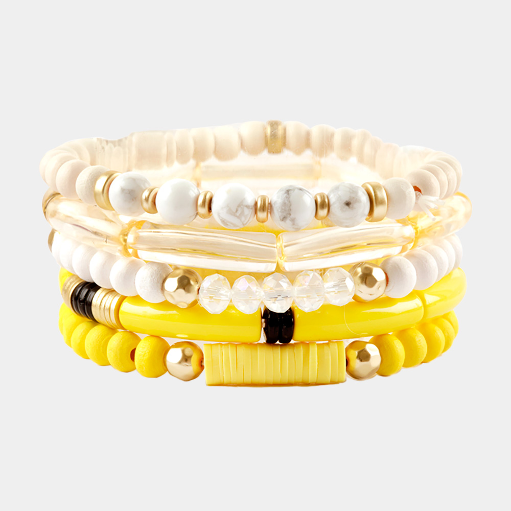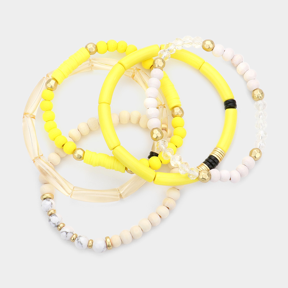 4PCS - Faceted Beaded Stretch Multi Layered Bracelets