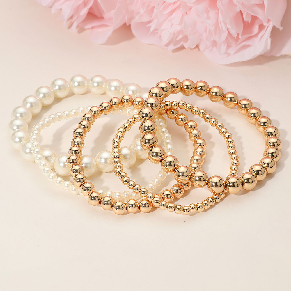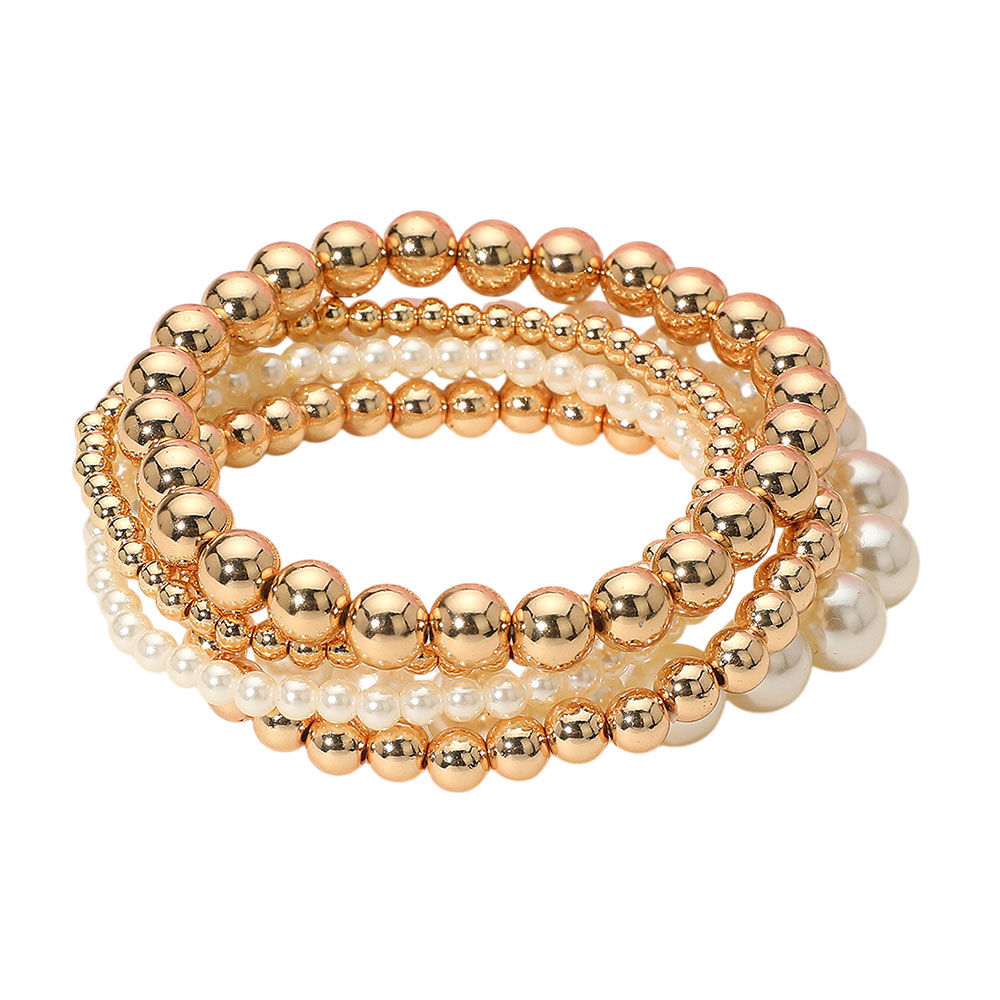 5PCS - Pearl Metal Ball Beaded Stretch Multi Layered Bracelets