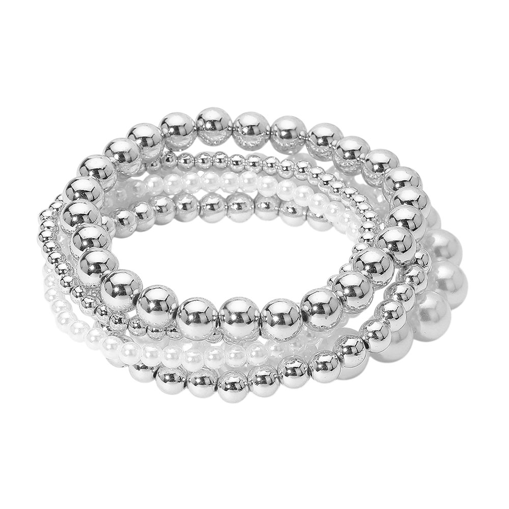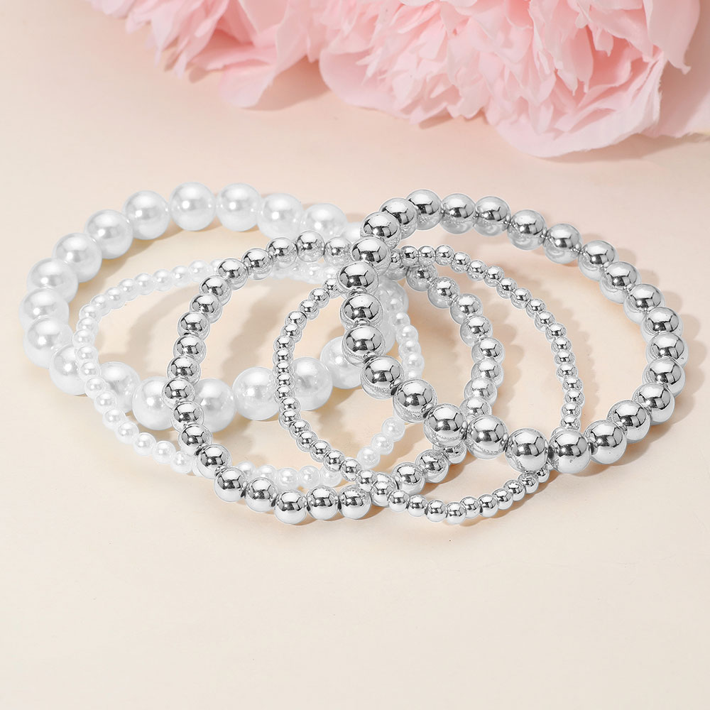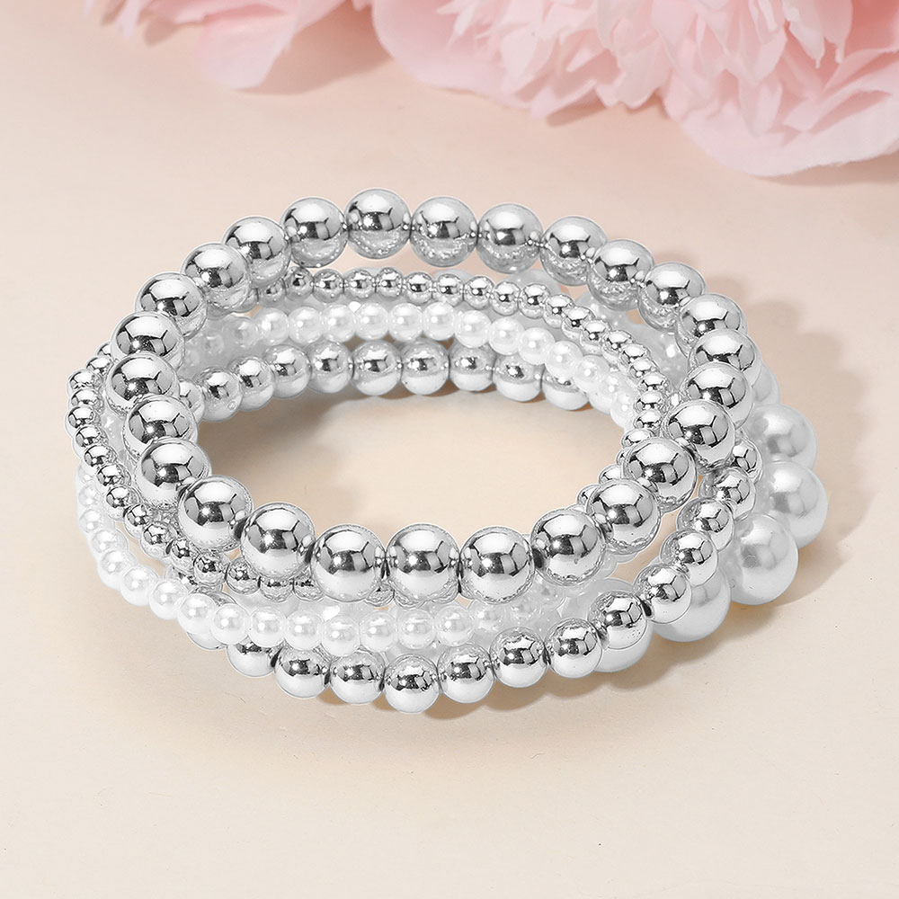 5PCS - Pearl Metal Ball Beaded Stretch Multi Layered Bracelets