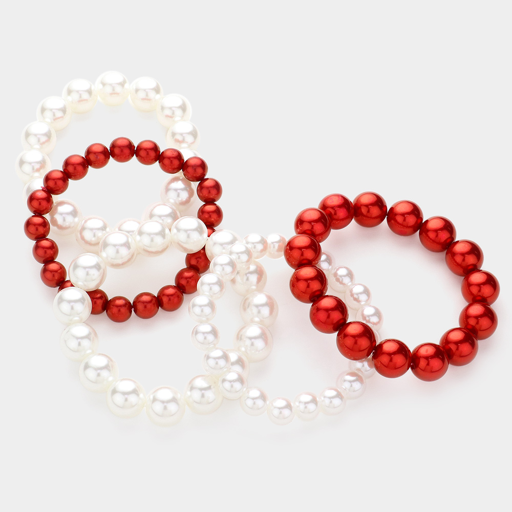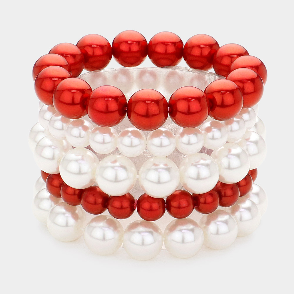Details • Size : 2.5" H • Stretchable • Make a statement with this eye-catching stretch bracelet set featuring alternating rows of polished beads and lustrous faux pearls. Designed for comfort and versatility, it adds a bold yet elegant touch to casual and dressy looks. Stackable style makes it a standout accessory.