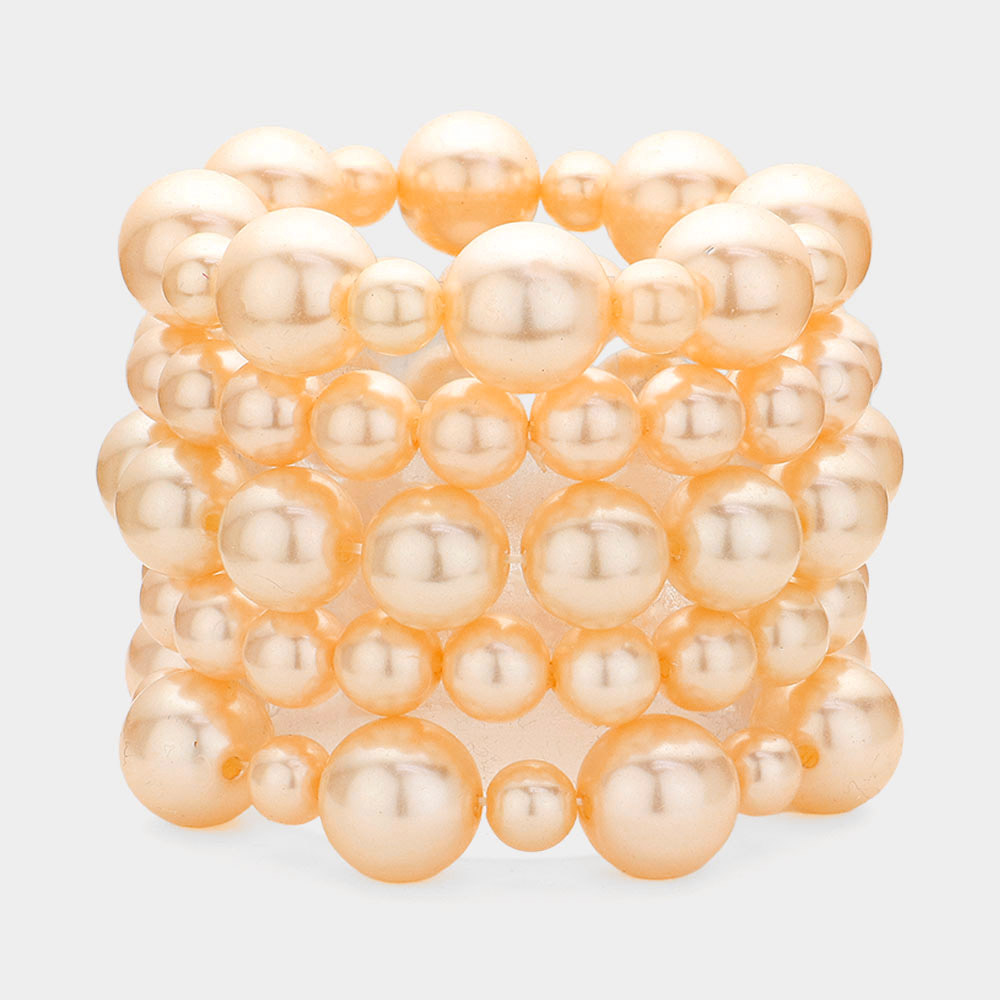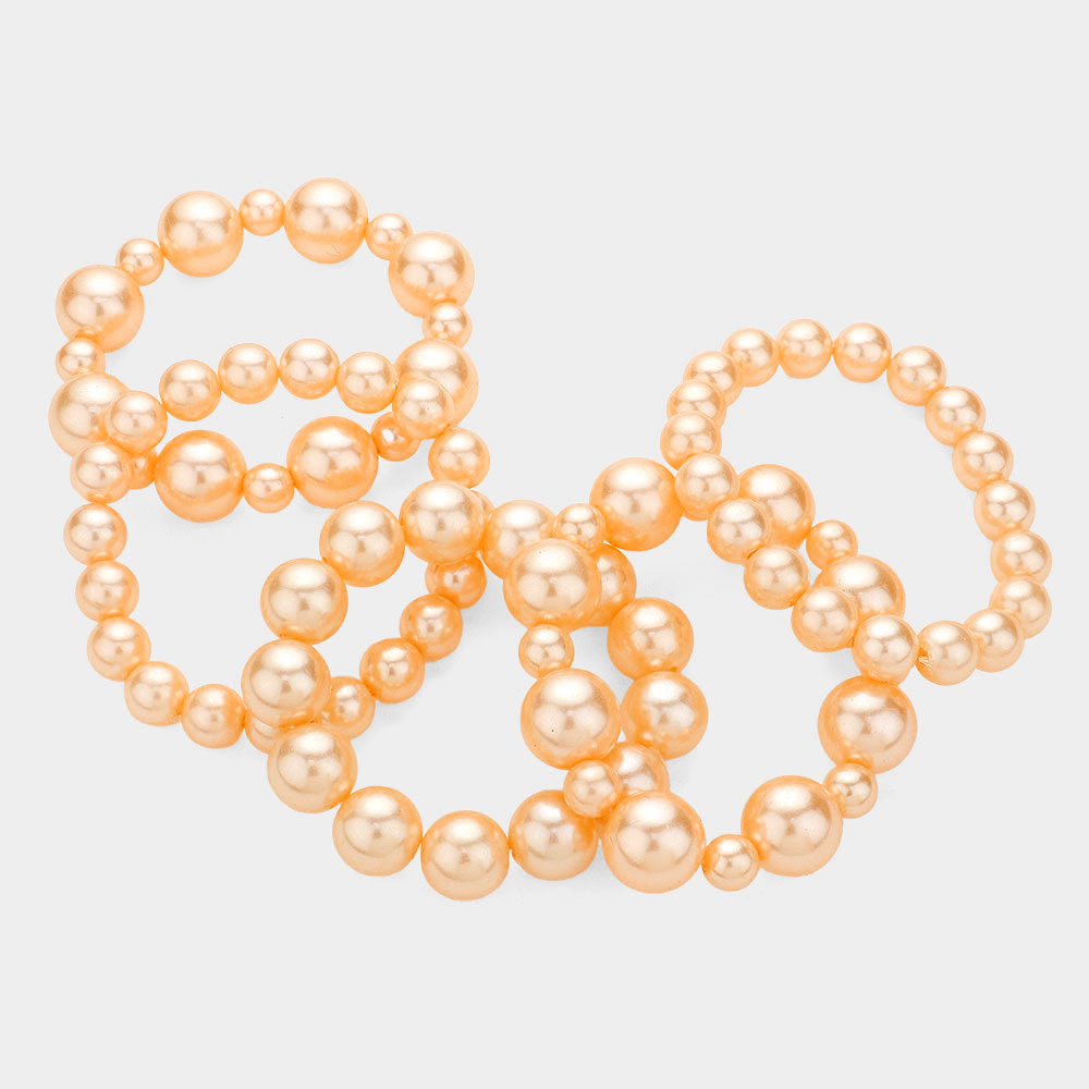 4PCS - Pearl Metal Ball Beaded Stretch Multi Layered Bracelets