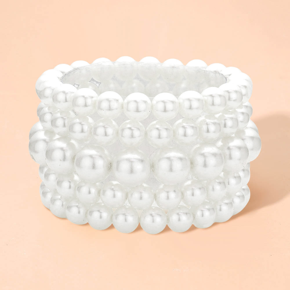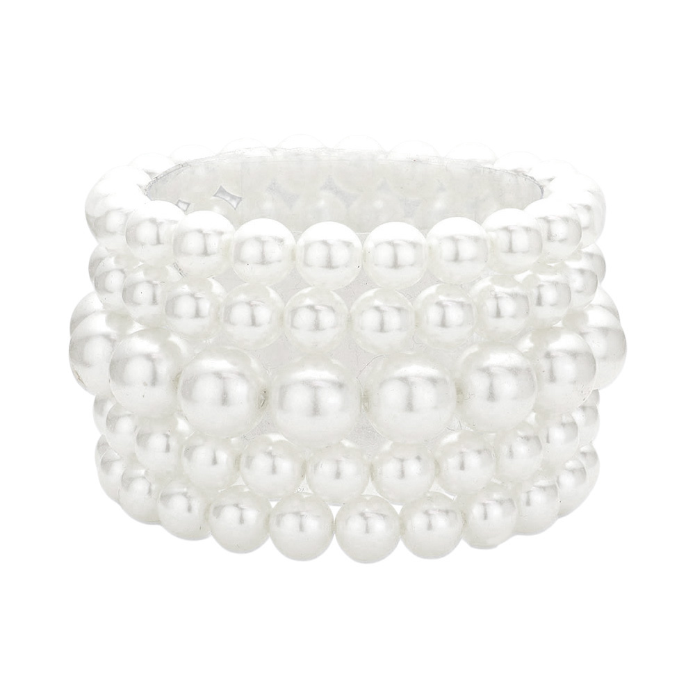 • Elegant stretch bracelet designed with multiple rows of lustrous pearl-like beads. A timeless statement accessory perfect for weddings, parties, and formal occasions, adding classic sophistication.