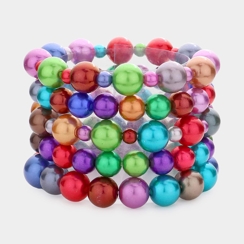 Natural Stone Metal Ball Pearl Coral Link Statement Necklace