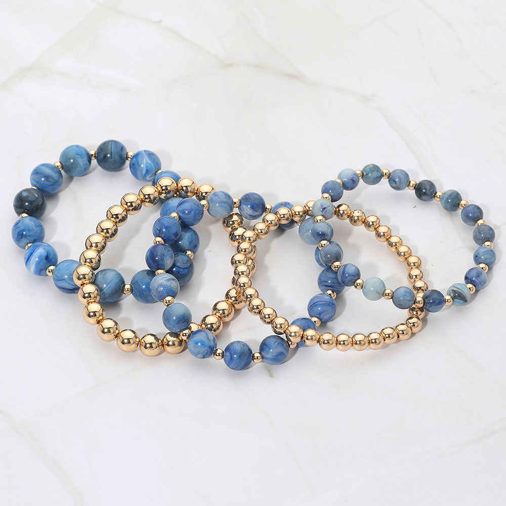 5PCS - Resin Metal Ball Beaded Stretch Multi Layered Bracelets