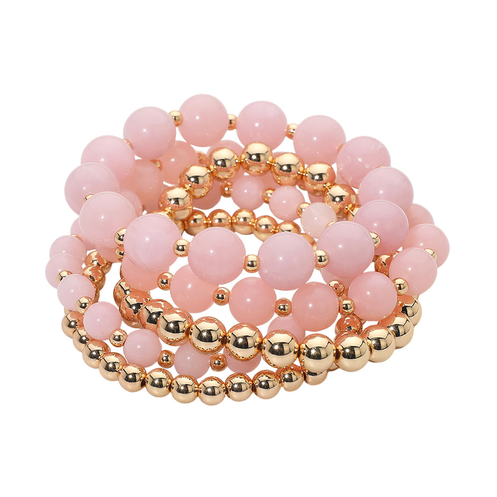 5PCS - Resin Metal Ball Beaded Stretch Multi Layered Bracelets