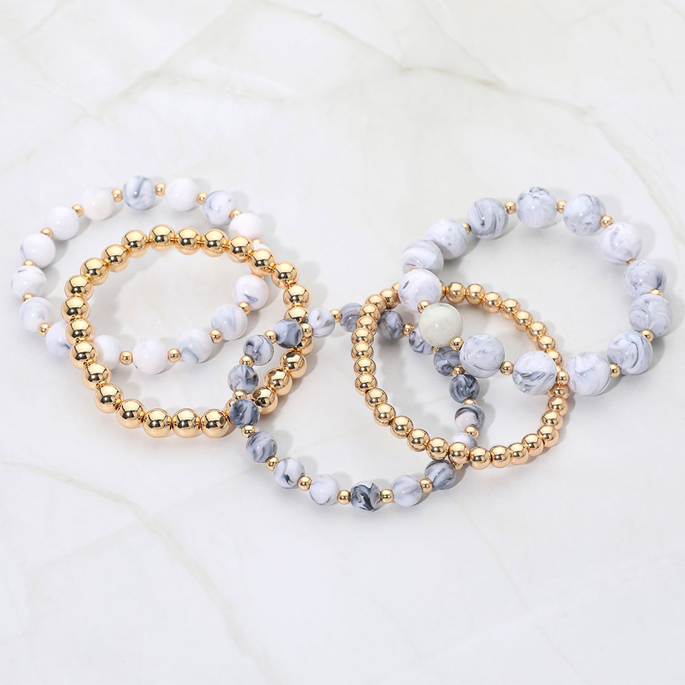 5PCS - Resin Metal Ball Beaded Stretch Multi Layered Bracelets