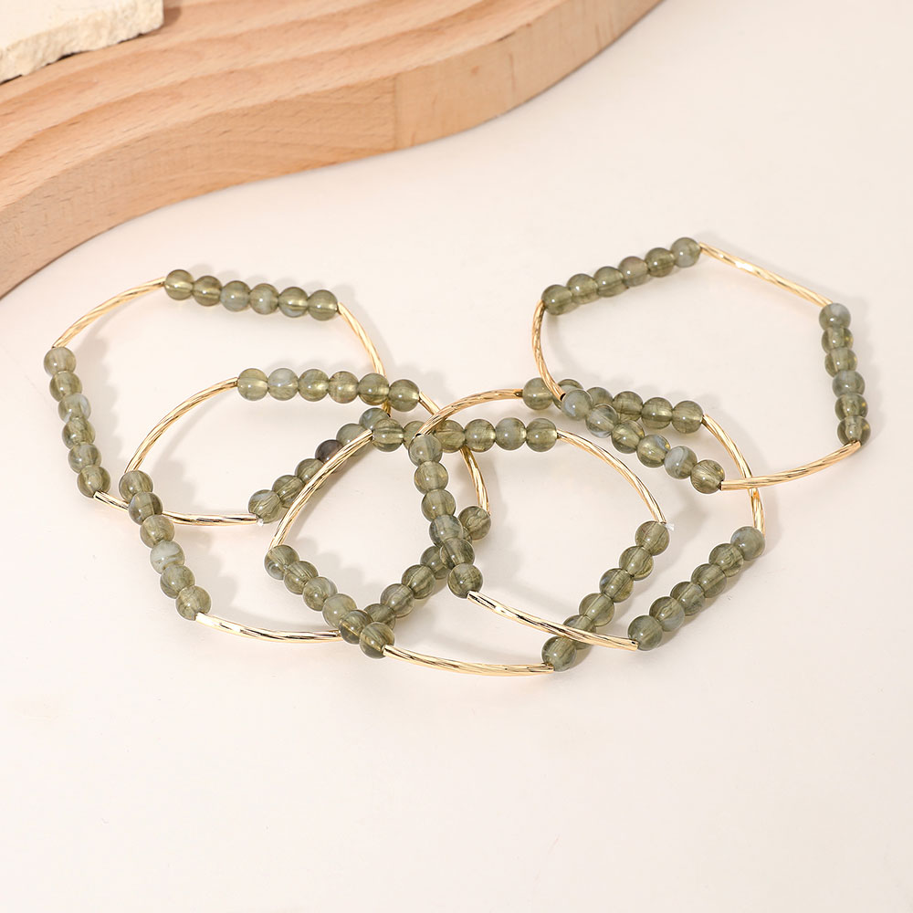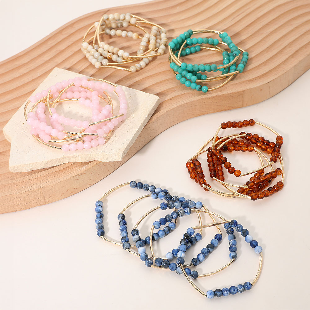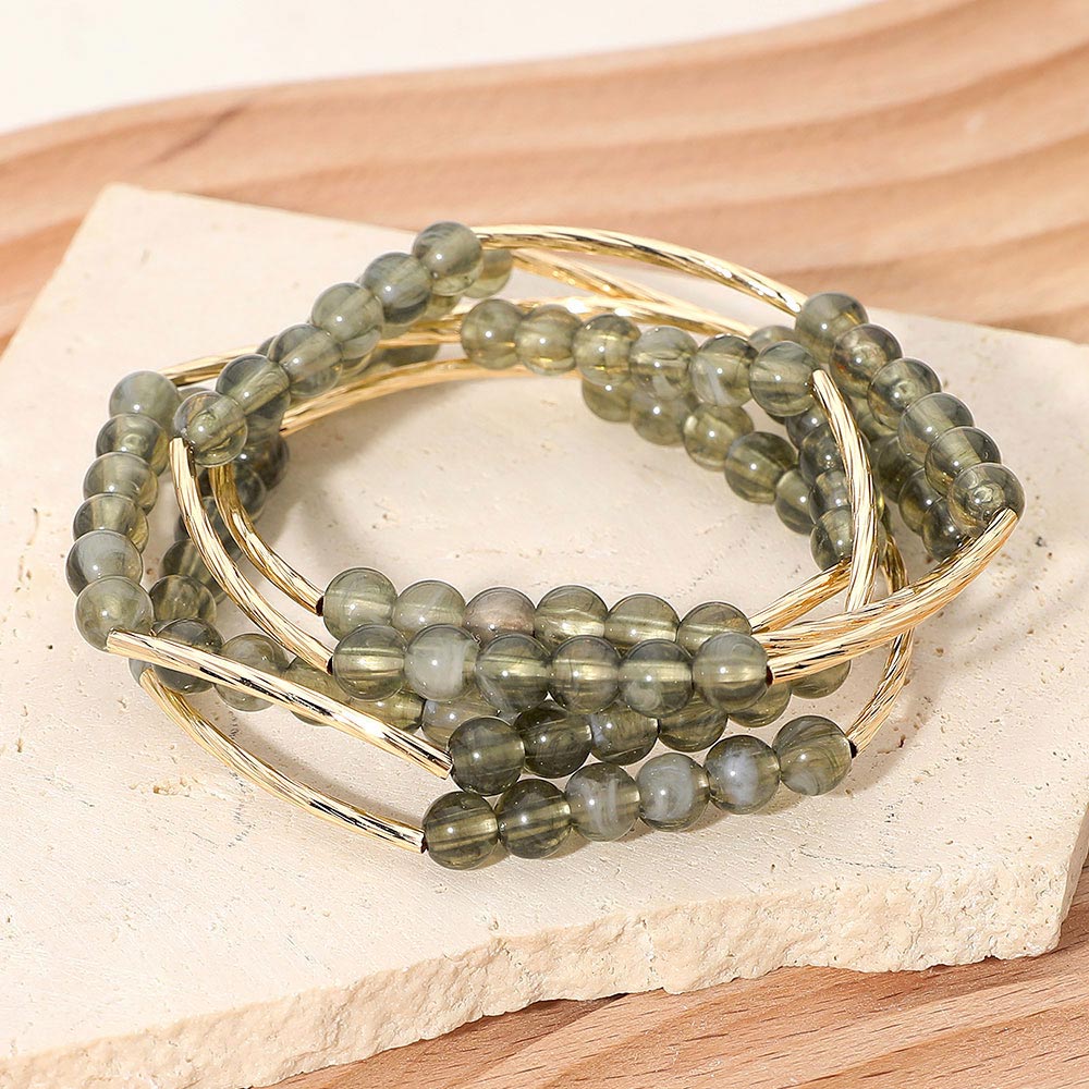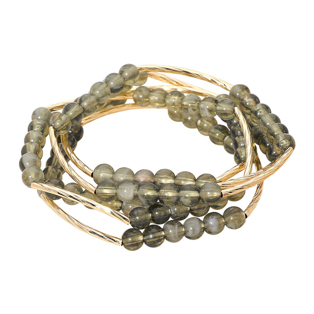 5PCS -Round Ball Curved Textured Bar Beaded Stretch Multi Layered Bracelets