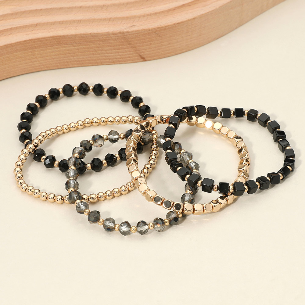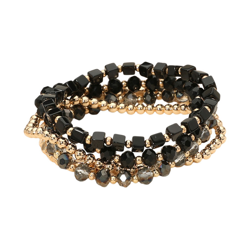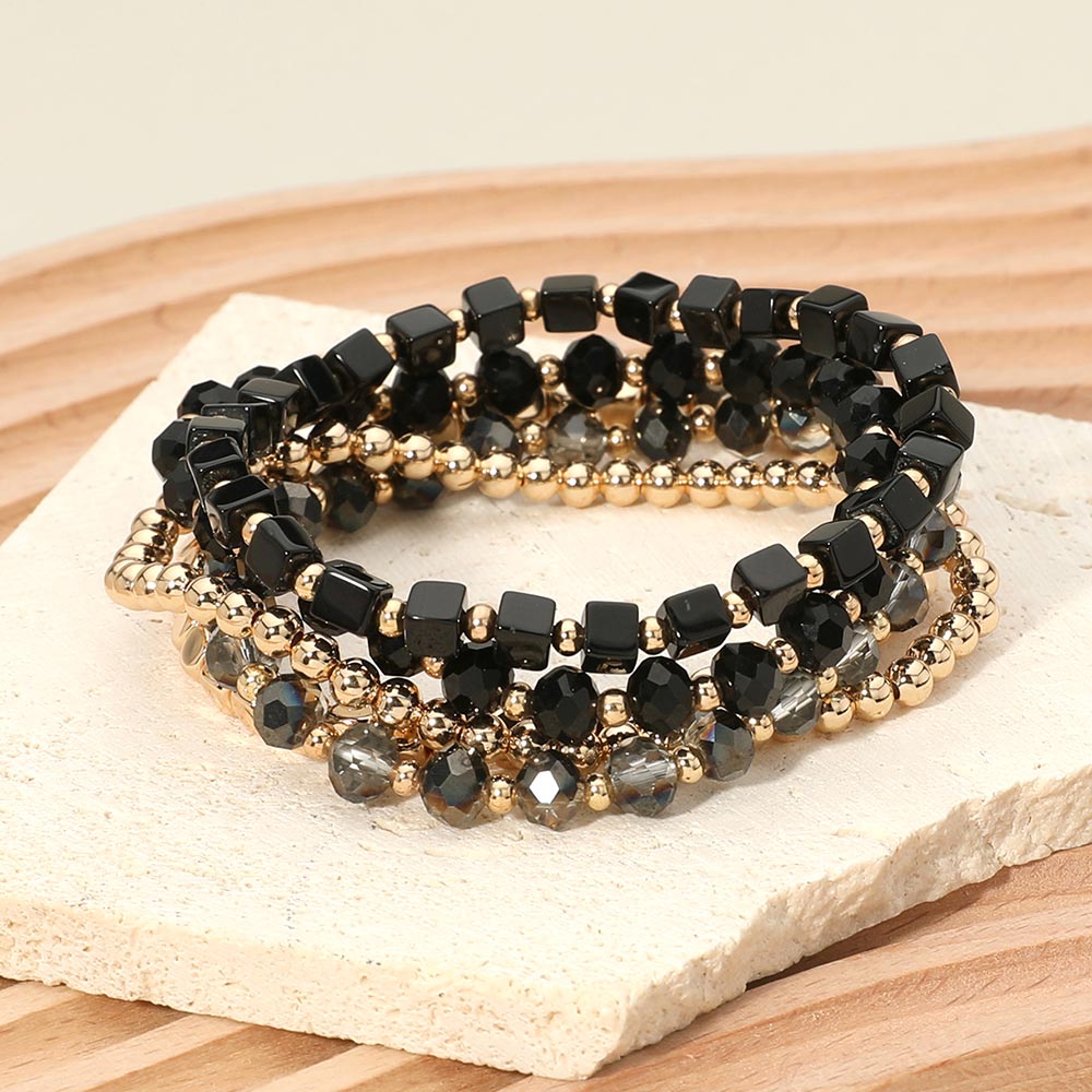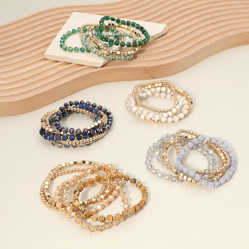 5PCS - Square Metal Ball Faceted Beaded Stretch Multi Layered Bracelets