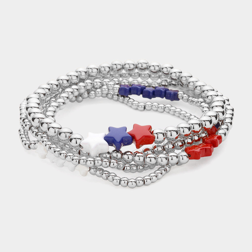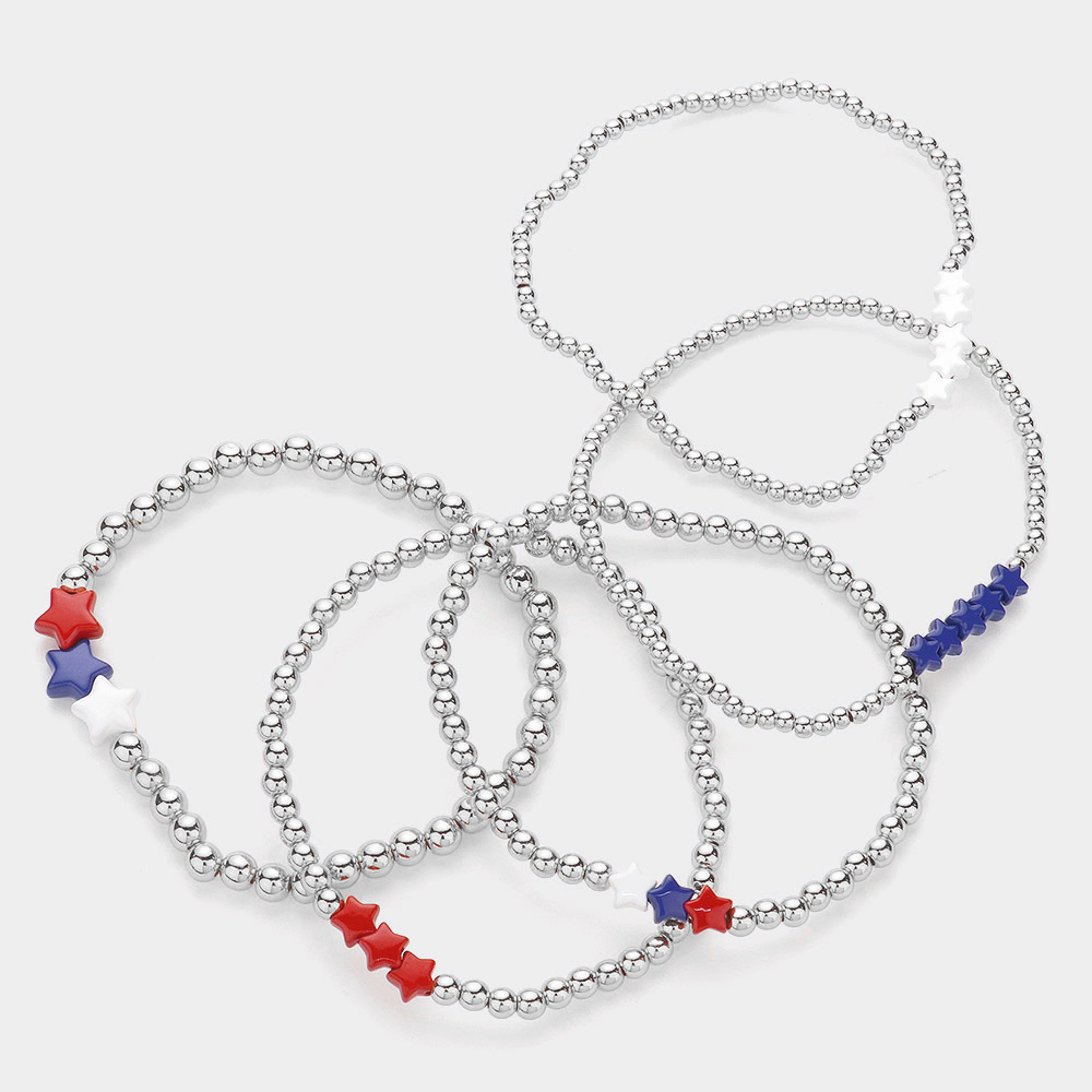 5PCS - Star Beads Pointed Metal Ball Beaded Stretch Multi Layered Bracelets