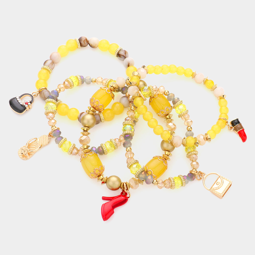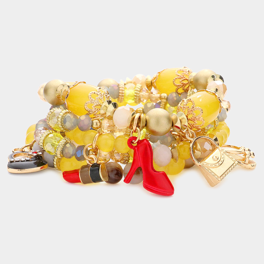 5PCS - Tote Bag Flip Flop Stiletto Heel Lipstick Charm Multi Beaded Stretch Bracelets