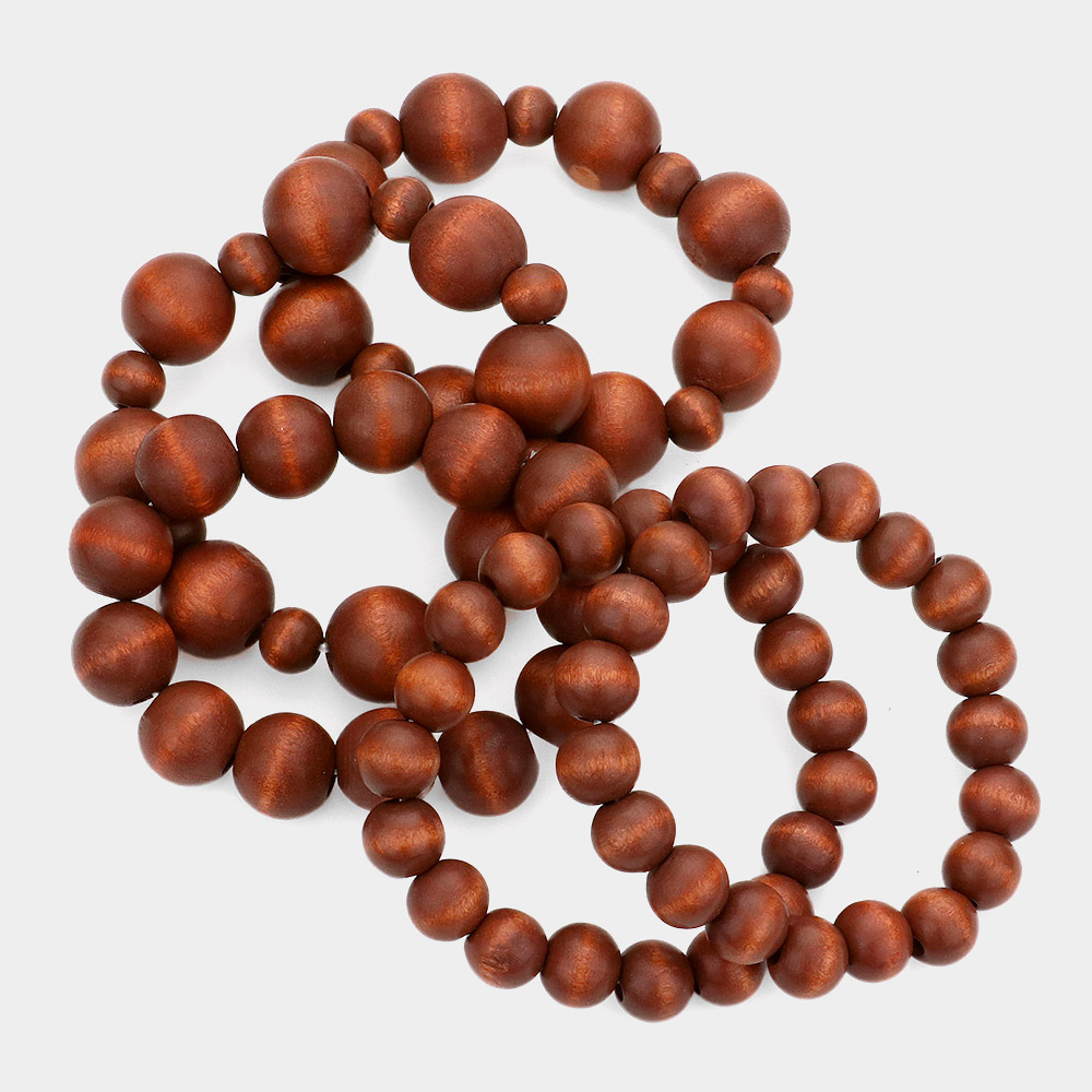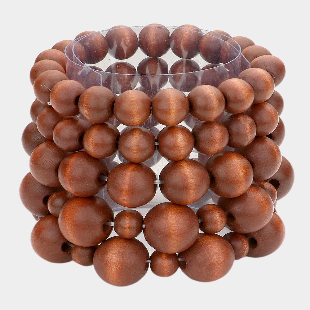 5PCS - Wood Faceted Beaded Stretch Bracelets
