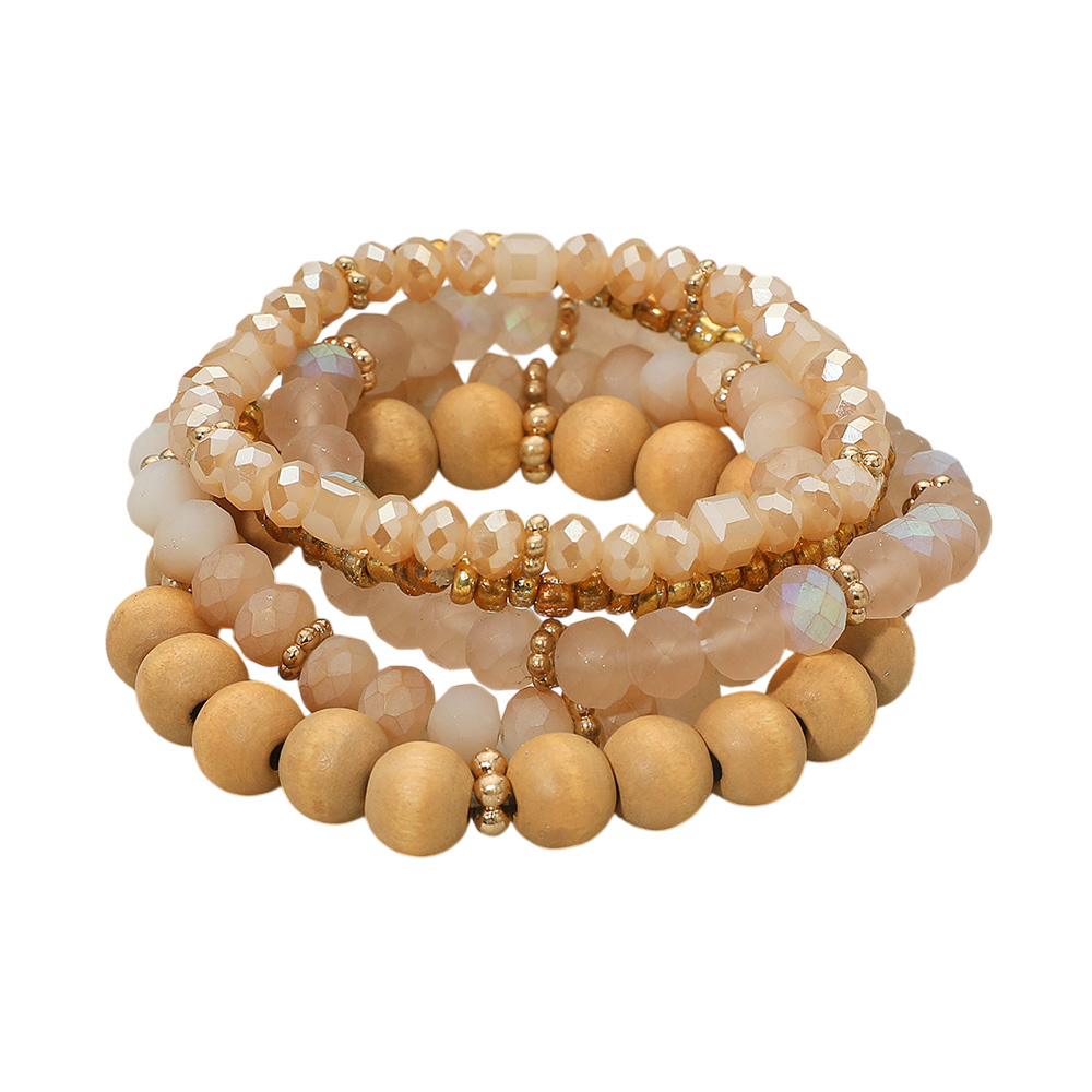 • This stretch bracelet set features a mix of smooth wooden beads and faceted glass accents, designed for versatile everyday wear. With multiple strands to stack together or wear separately, this set offers a chic and lightweight accessory to elevate any outfit.