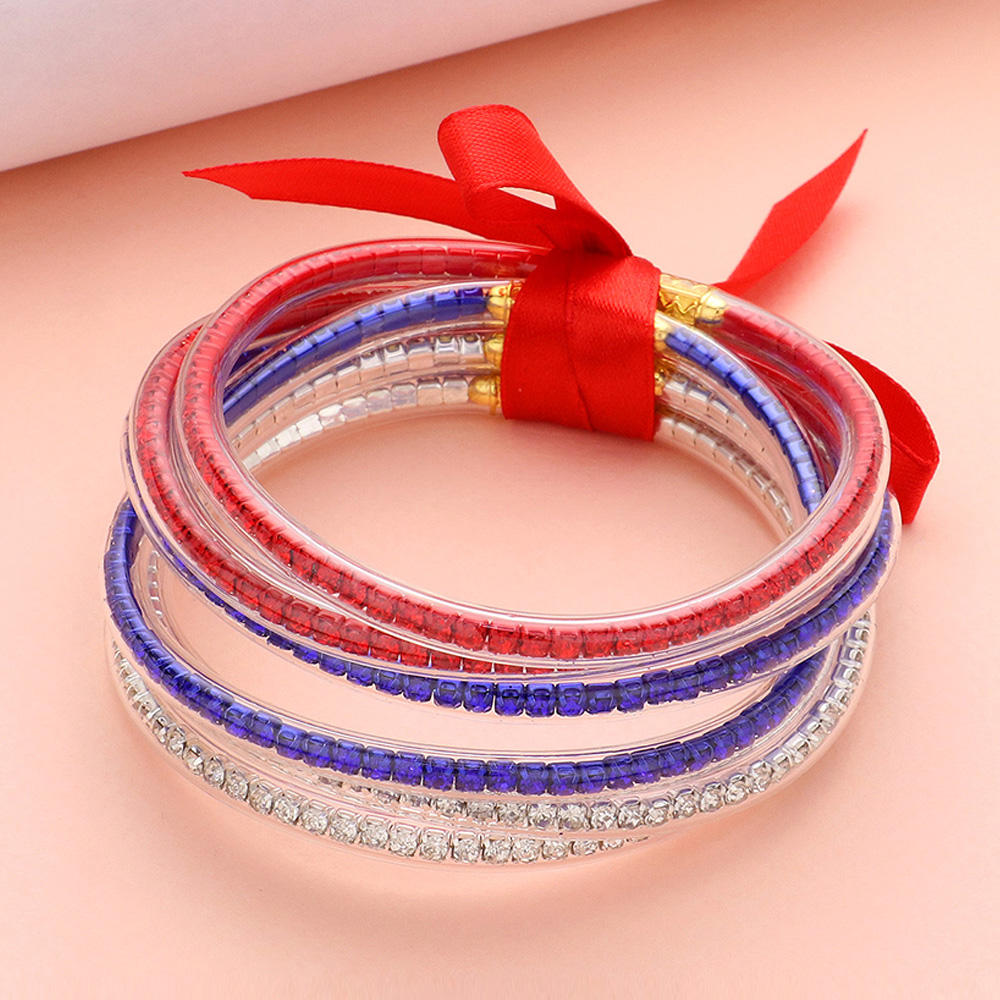 6PCS - Bling Studded Jelly Tube Bangle Bracelets