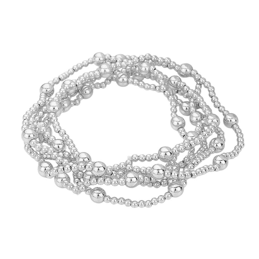 Details • Size : 0.8" H • Stretchable • Add a touch of versatile elegance with this 6-piece beaded bracelet set featuring polished beads in multiple sizes for a textured look. The stretch design ensures an easy fit, making these bracelets perfect for stacking together or wearing individually to complement both casual and dressy outfits. • Lead and Nickel Compliant