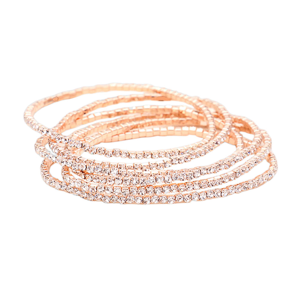 6PCS - Rhinestone Multi Layered Stretch Evening Bracelets