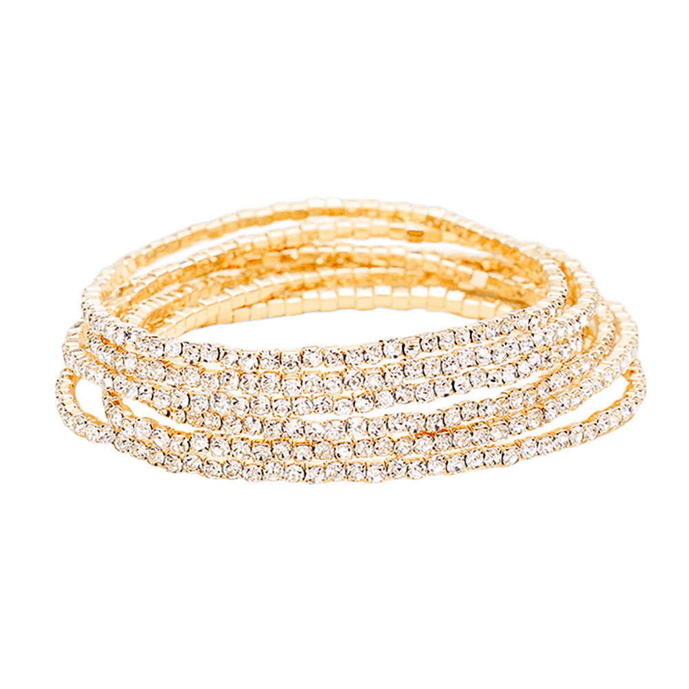 6PCS - Rhinestone Multi Layered Stretch Evening Bracelets