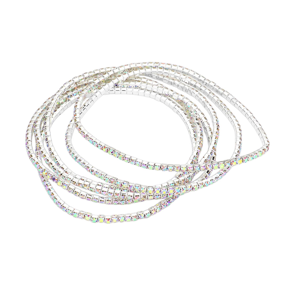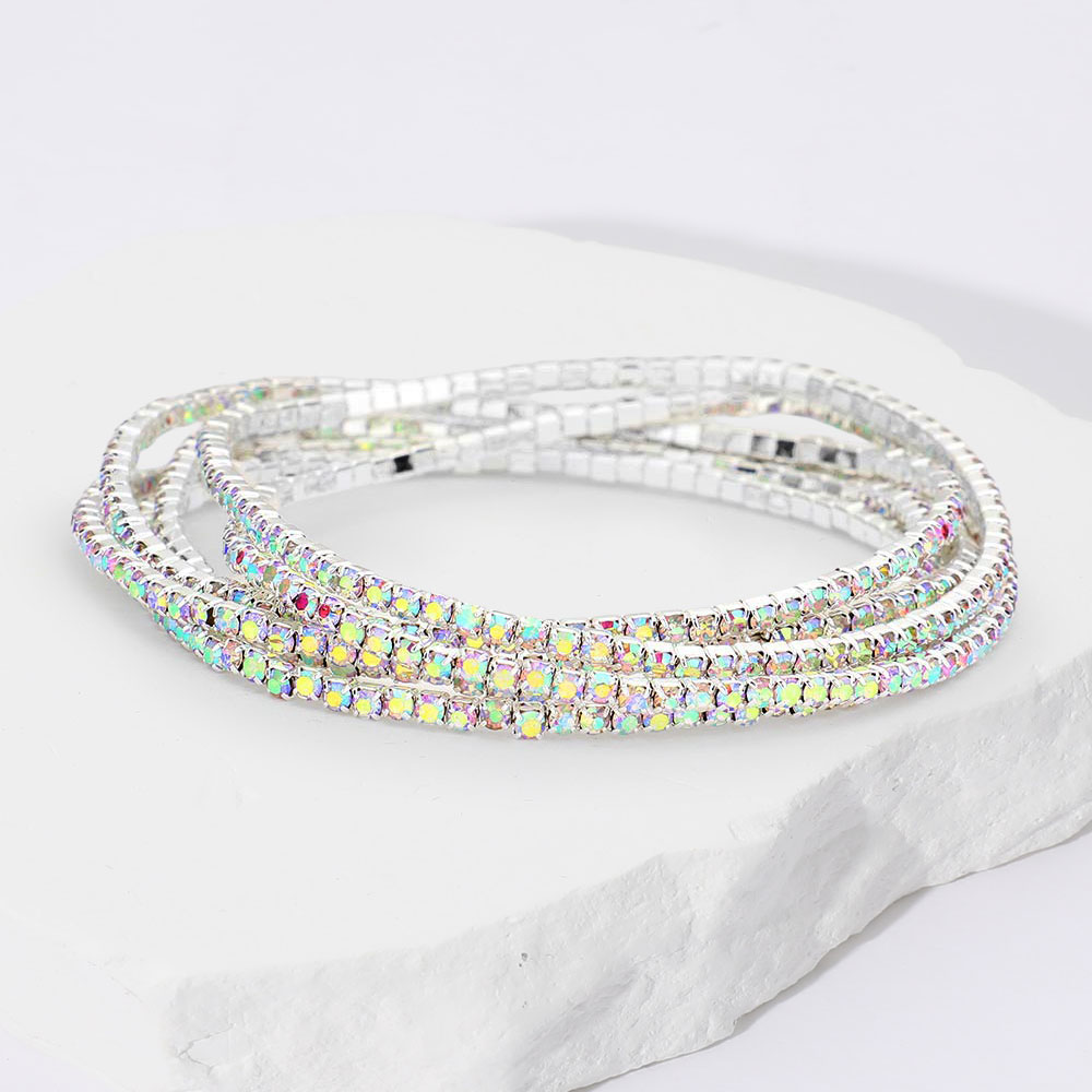 6PCS - Rhinestone Multi Layered Stretch Evening Bracelets