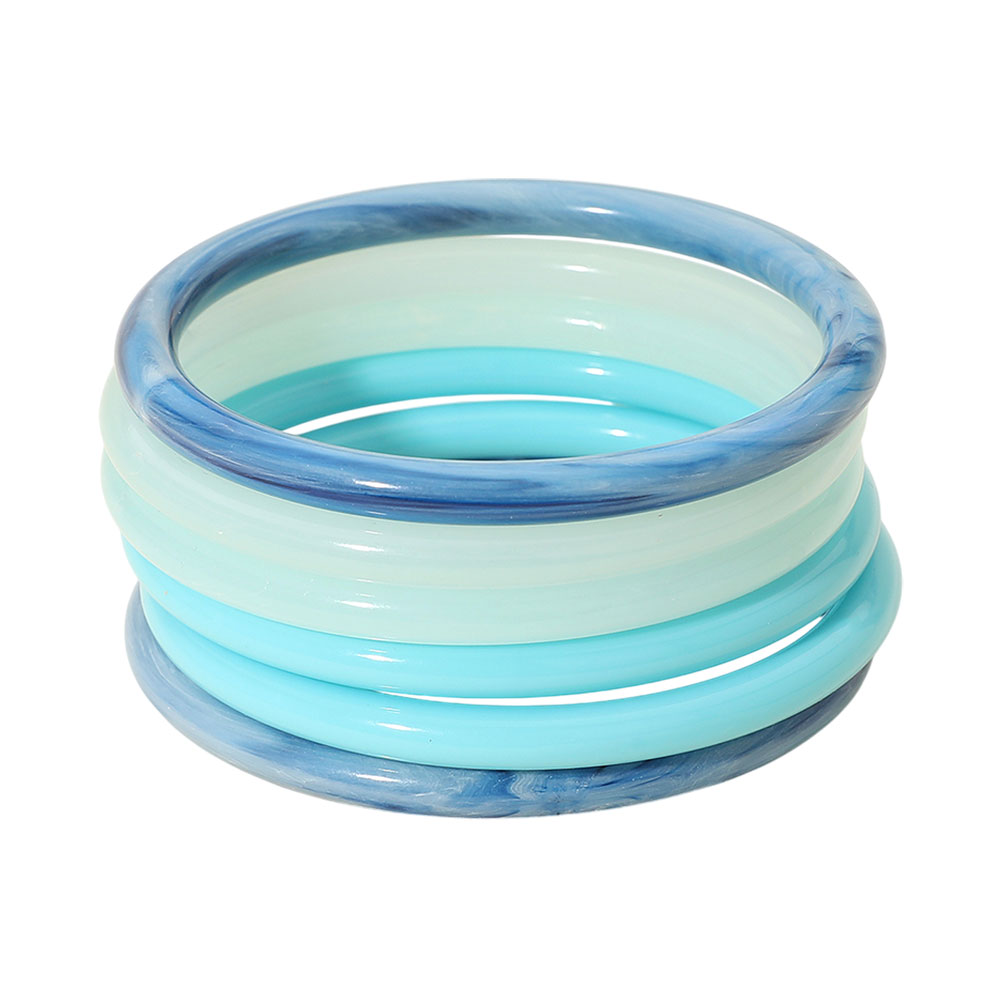 • Stylish stackable bangle set designed with rounded resin bracelets in a smooth marbled finish. Lightweight, comfortable, and perfect for adding a modern layered touch to casual or dressy outfits. Ideal for daily accessorizing and gifting.