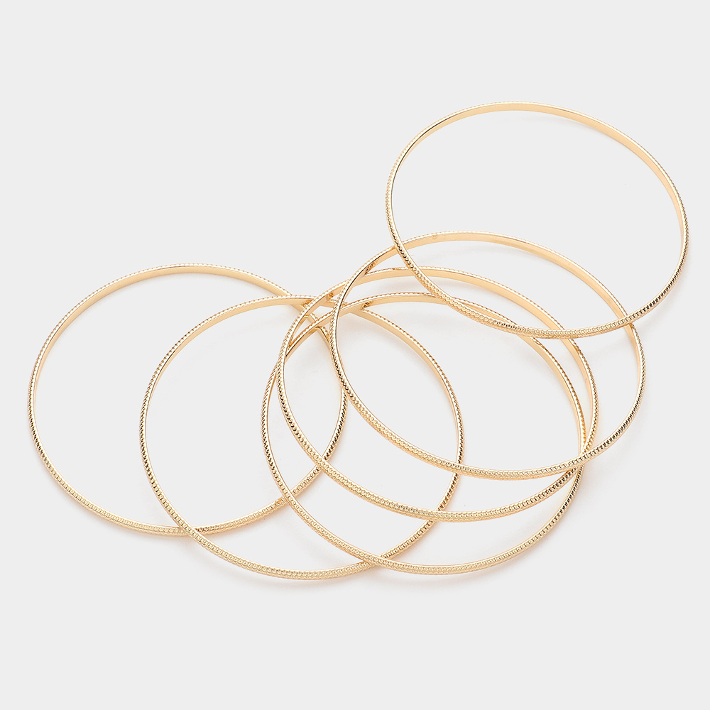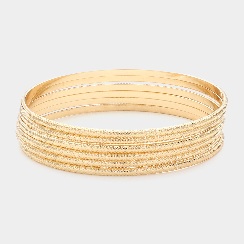 6PCS - Textured Metal Multi Layered Bangle Bracelets