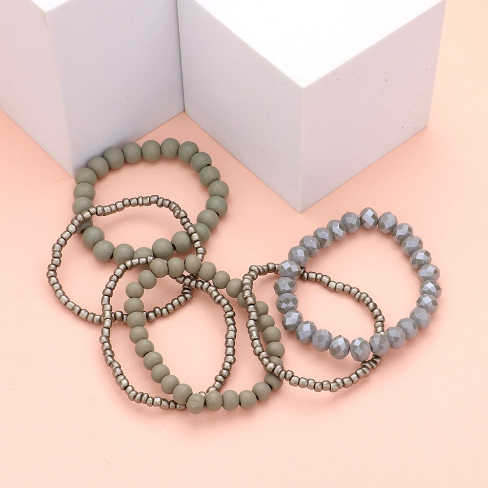 • Complete your look with this multi-strand beaded bracelet set, featuring smooth round beads, faceted crystal accents, and delicate seed bead strands. Perfect for layering, this stretch design offers versatile style that transitions effortlessly from casual wear to elegant outfits with modern charm.