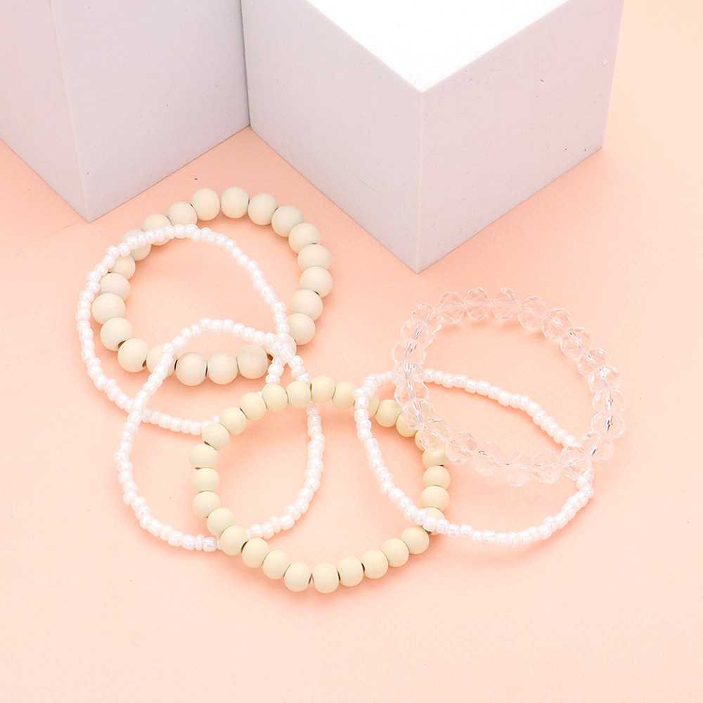 Details • Size : 1.6" H • Stretchable • Complete your look with this multi-strand beaded bracelet set, featuring smooth round beads, faceted crystal accents, and delicate seed bead strands. Perfect for layering, this stretch design offers versatile style that transitions effortlessly from casual wear to elegant outfits with modern charm. • Lead and Nickel Compliant