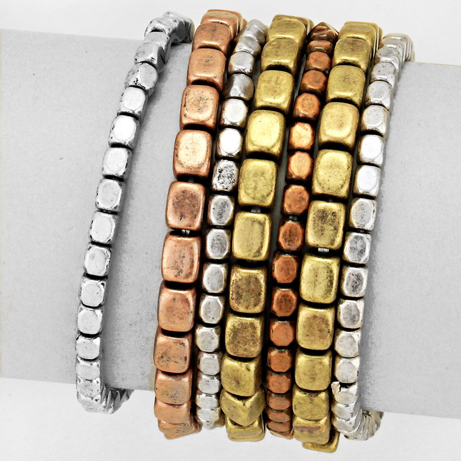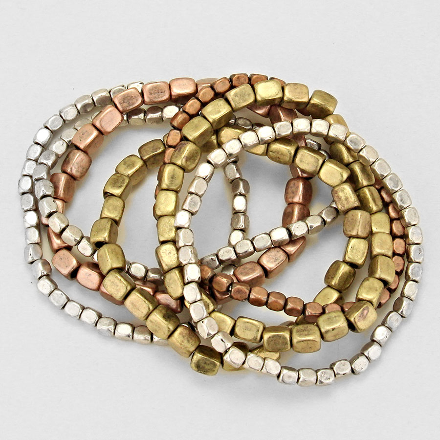 7 PCS - Metal Bead Stack Stretch Multi Layered Bracelets