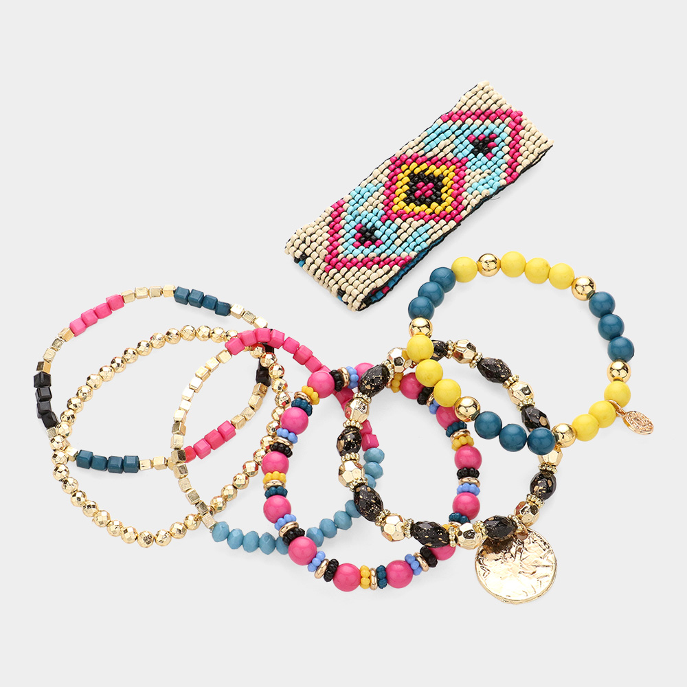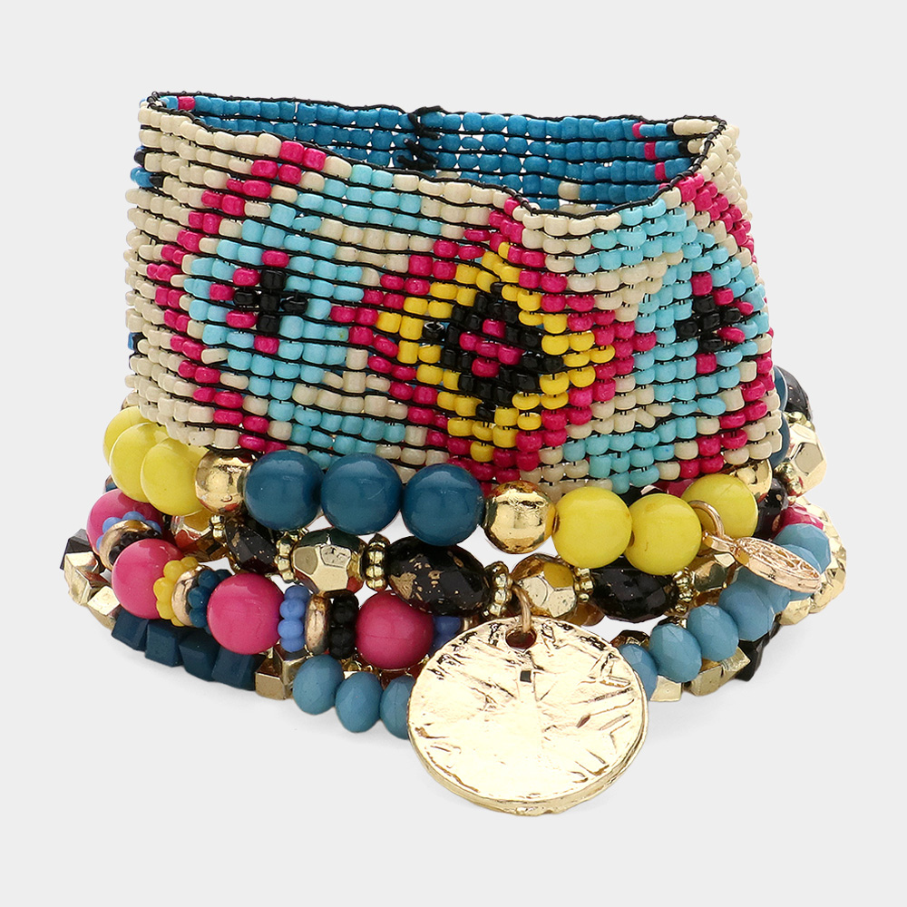 Beaded Flower Teardrop Stone Link Dangle Earrings