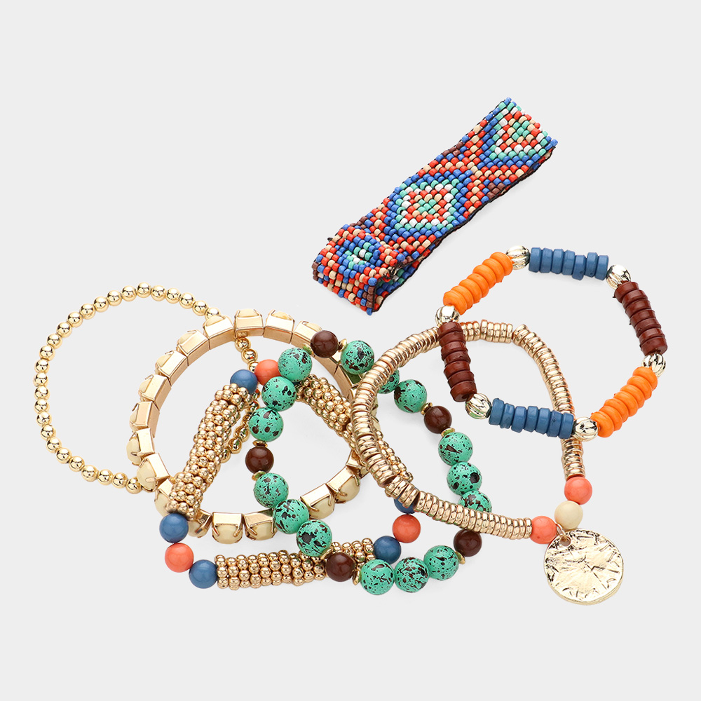 7PCS - Boho Stretchable Multi Layered Bracelets