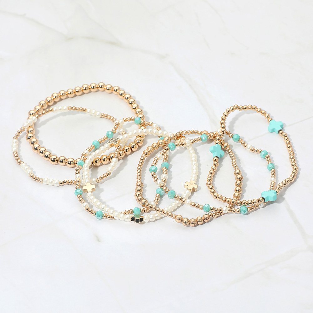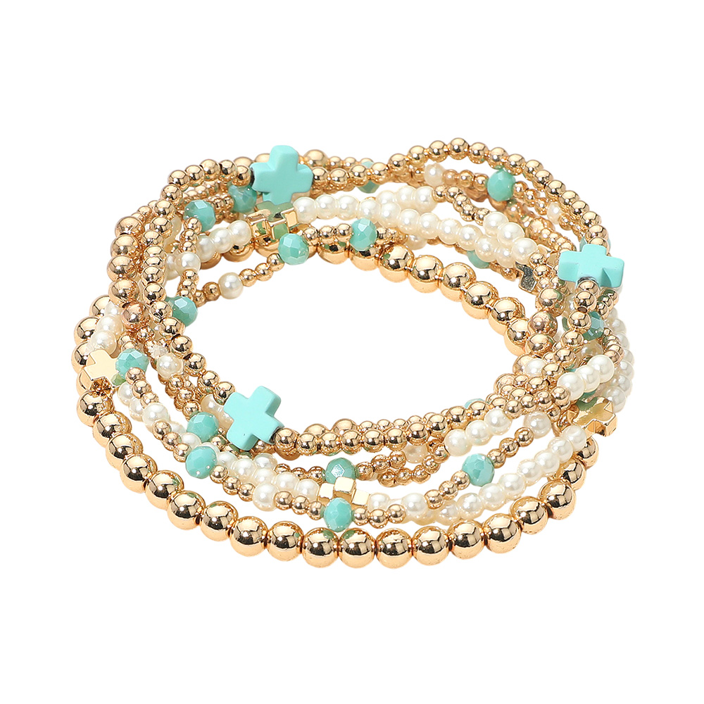 Details • Size : 1.3" H • Stretchable • Elegant multi-strand beaded bracelet set featuring smooth and faceted beads with cross accents. Designed with stretch for a comfortable fit, this layered bracelet set adds a touch of style and meaning, perfect for casual wear, special events, or stacking with other jewelry pieces. • Lead and Nickel Compliant