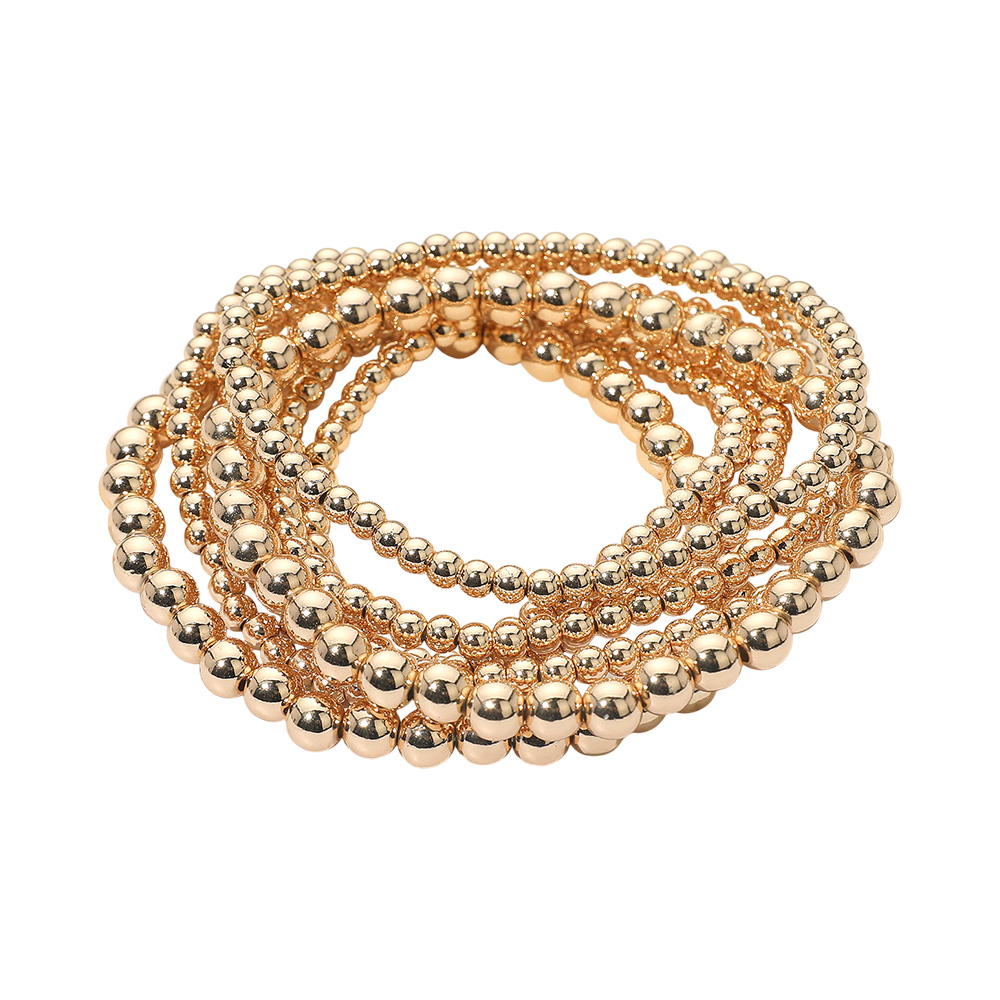 7PCS - Metal Ball Beaded Stretch Multi Layered Bracelets