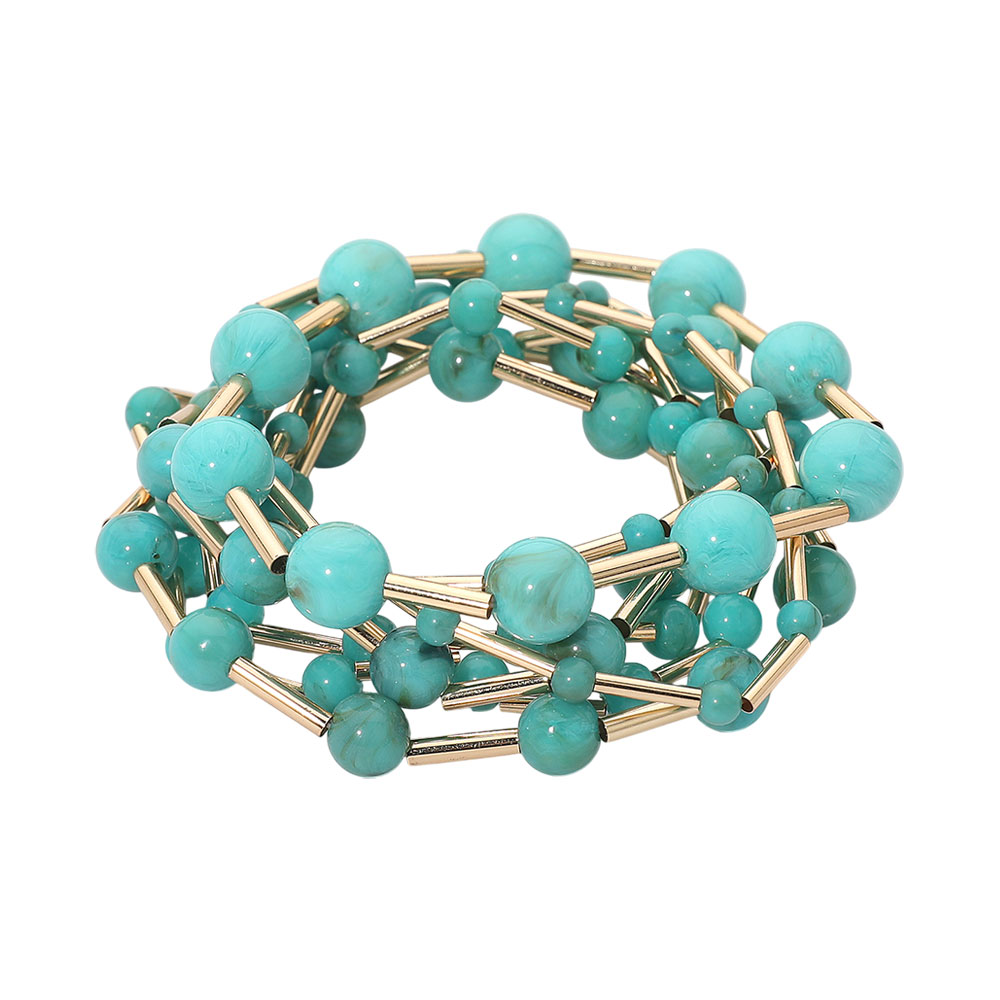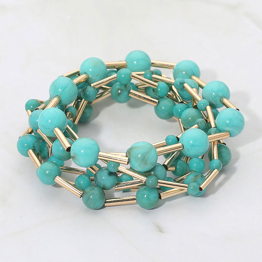 7PCS - Resin Ball Metal Bar Beaded Stretch Multi Layered Bracelets