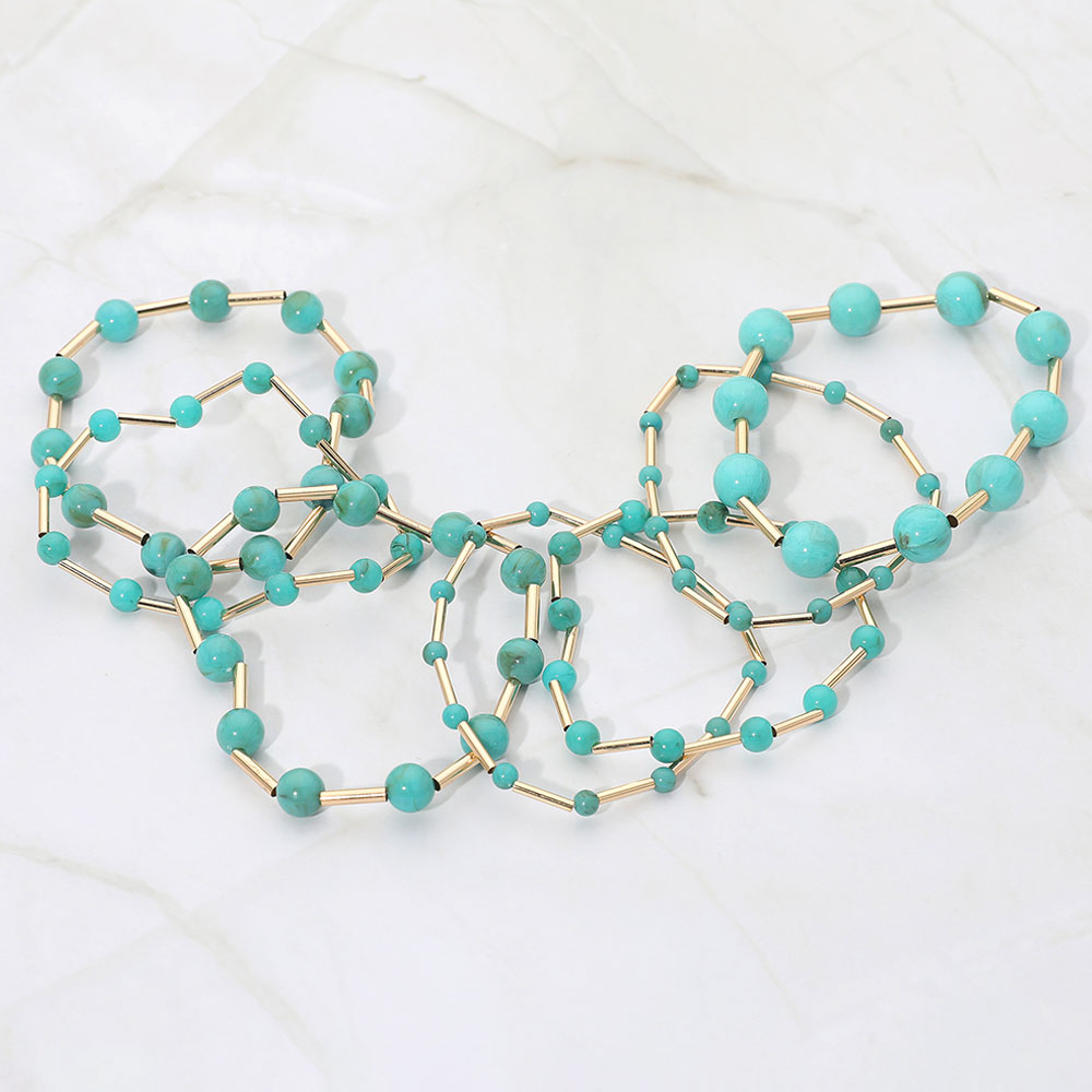 7PCS - Resin Ball Metal Bar Beaded Stretch Multi Layered Bracelets 7PCS - Resin Ball Metal Bar Beaded Stretch Multi Layered Bracelets 7PCS - Resin Ball Metal Bar Beaded Stretch Multi Layered Bracelets